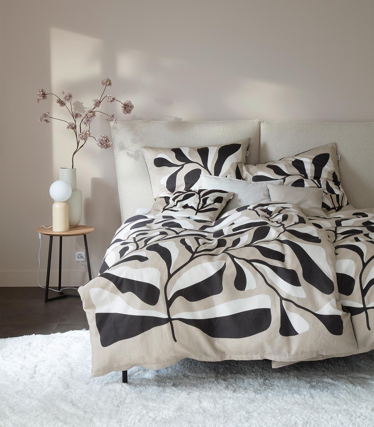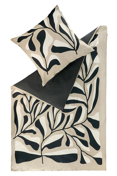 Die Satin-Bettwäsche PLANT der Marke Schöner Wohnen besteht aus Baumwolle in den Farbe Beige und Anthrazit. Sie ist auf der Vorderseite mit floralem Muster in Anthrazit und auf der Rückseite in Uni-Anthrazit gestaltet und umfasst einen Bettbezug und einen Kissenbezug. Beide Bezüge sind mit einem praktischen Reißverschluss ausgestattet und sind bei 60° C waschbar. Die Maße des Deckenbezugs betragen 135 x 200 cm, der Kissenbezug misst 80 x 80 cm.