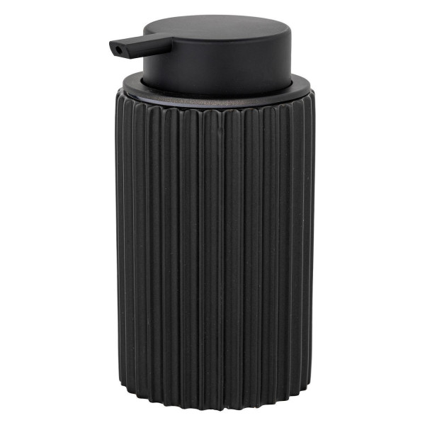 Der Seifenspender SOLIERA der Marke Schöner Wohnen ist aus schwarzer Keramik gefertigt und mit Längsrillen versehen. Der Boden ist mit Anti-Rutsch-Noppen ausgestattet, die für einen sicheren Stand sorgen. Der Seifenspender hat eine Breite von 9,5 cm, eine Höhe von 13,5 cm und eine Tiefe von 8,5 cm. Das Fassungsvermögen beträgt 400 ml.
