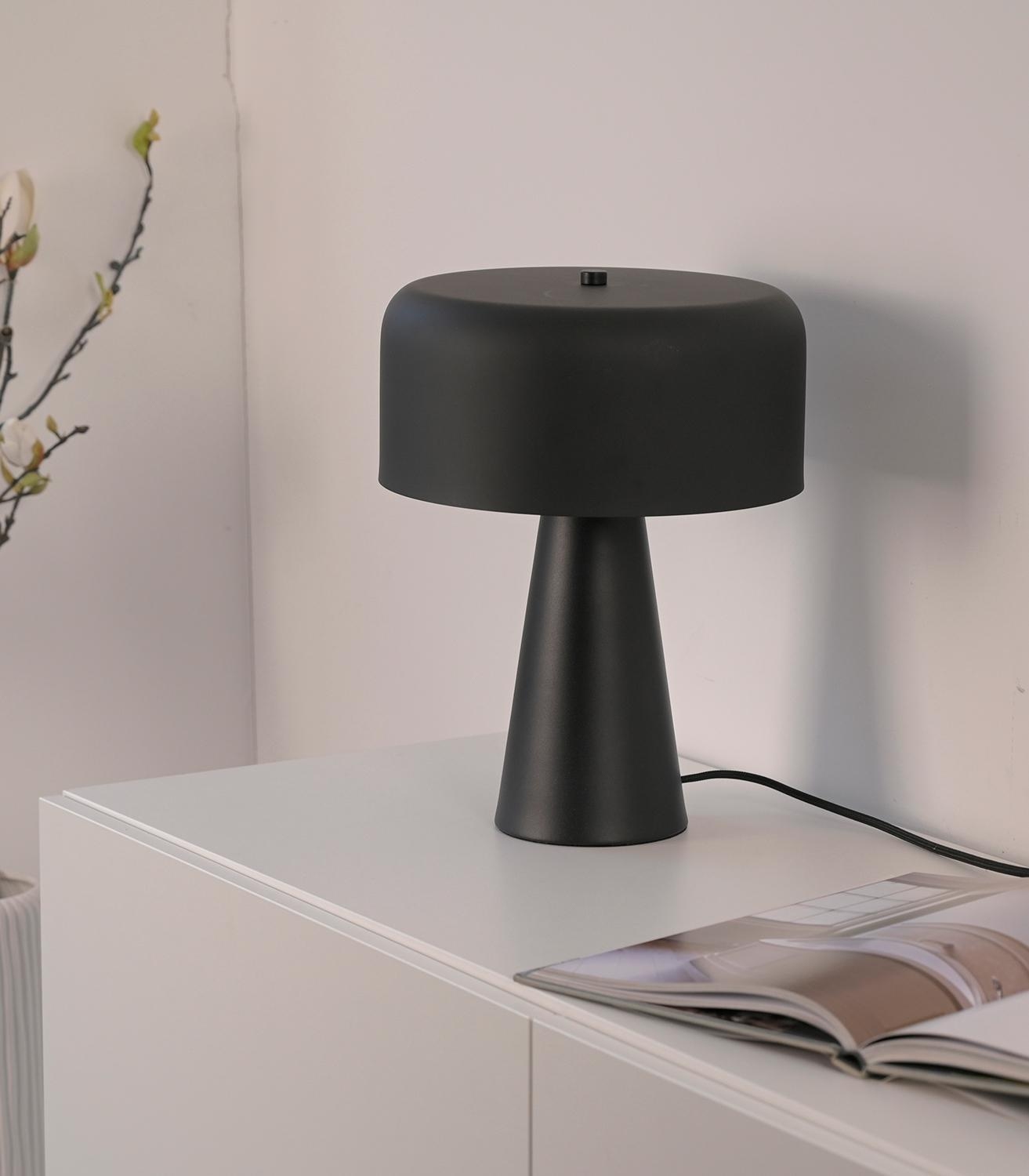 Die Tischlampe PENTO der Marke Schöner Wohnen ist aus Metall gefertigt und in der Farbe Schwarz gehalten. Sie ist mit einem Schnurschalter ausgestattet. Der Durchmesser der Lampe beträgt 26,5 cm, die Höhe liegt bei 34,5 cm. Die Lampe verfügt über eine E27-Fassung für ein Leuchtmittel. Es ist kein Leuchtmittel im Lieferumfang enthalten. Das Leuchtmittel ist austauschbar und darf eine maximale Leistung von 25 Watt nicht überschreiten.