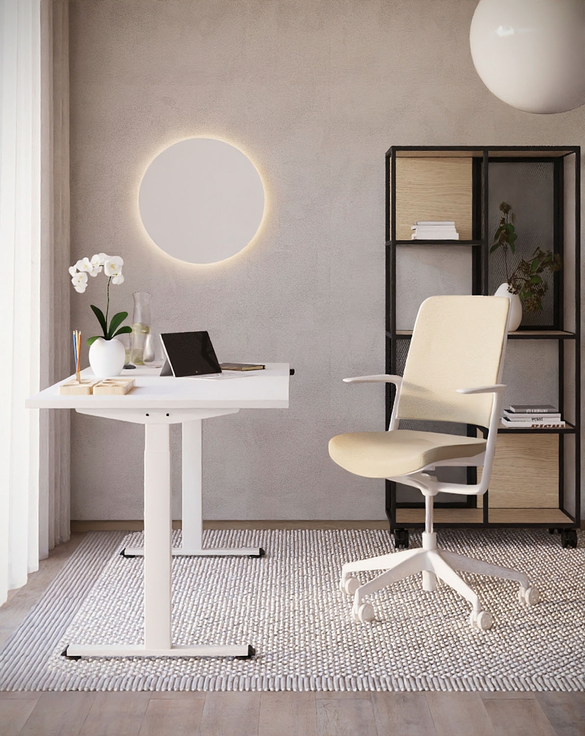 Der Schreibtisch eCOMO kombiniert modernes Design mit praktischer Funktionalität. Die Tischplatte aus melaminbeschichtetem Holzwerkstoff in elegantem Weiß bietet eine strapazierfähige und pflegeleichte Oberfläche. Das weiße, pulverbeschichtete Stahlgestell sorgt für Stabilität und Langlebigkeit. Dank der elektrischen Höhenverstellung per Handschalter lässt sich die Tischhöhe flexibel von 72 bis 120 cm einstellen, ideal für ergonomisches Arbeiten. Der Tisch ist mit einer Auffahrschutz-Funktion und einem digitalen Display ausgestattet, um die Handhabung zu erleichtern. Mit einer Breite von 135 cm und einer Tiefe von 65 cm passt der Schreibtisch in nahezu jedes Arbeitsumfeld.
