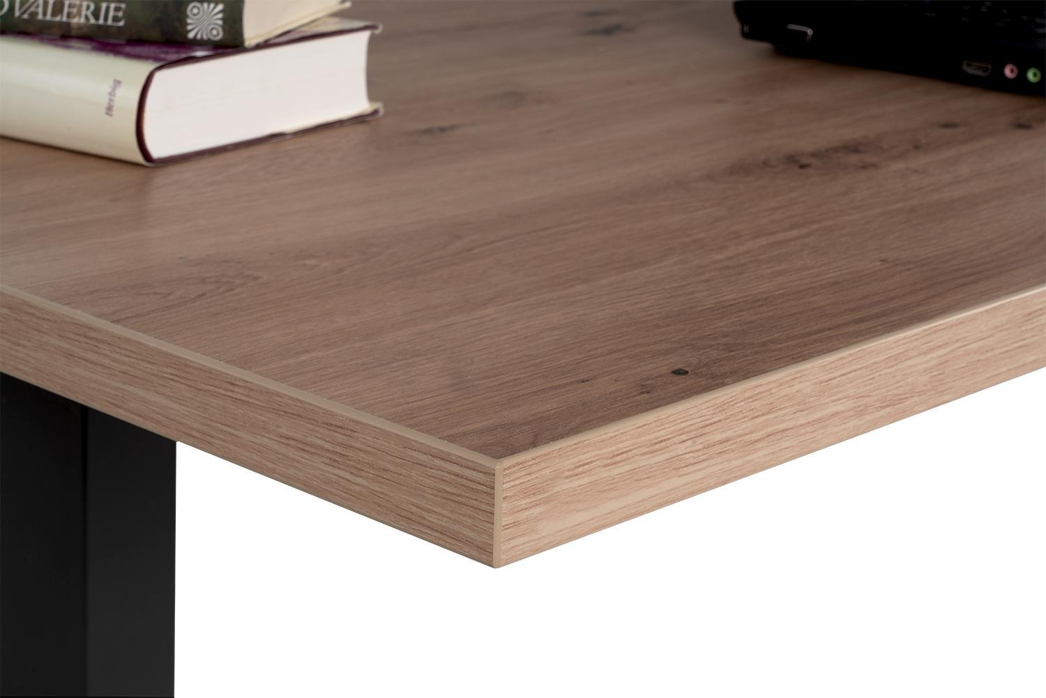 Der Schreibtisch EDMUND kombiniert modernes Design mit praktischer Funktionalität. Sein stabiles Gestell aus anthrazitfarbenem Metall harmoniert perfekt mit der eleganten Tischplatte aus Holzwerkstoff in Artisan Eiche Dekor. Mit einer Breite von 150 cm und einer Tiefe von 69 cm bietet er ausreichend Platz für alle Arbeitsutensilien. Besonders praktisch: Der Schreibtisch ist elektrisch über einen Motor höhenverstellbar von 72 bis 120 cm und verfügt über ein digitales Display sowie eine 3-fache Memory-Funktion, die individuelle Höheneinstellungen speichert.