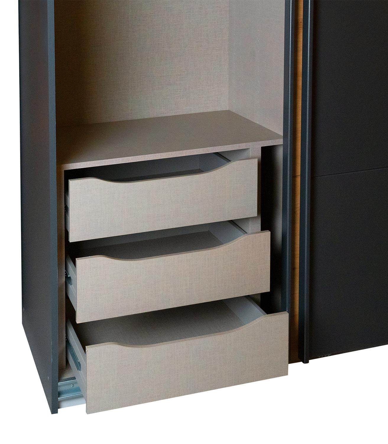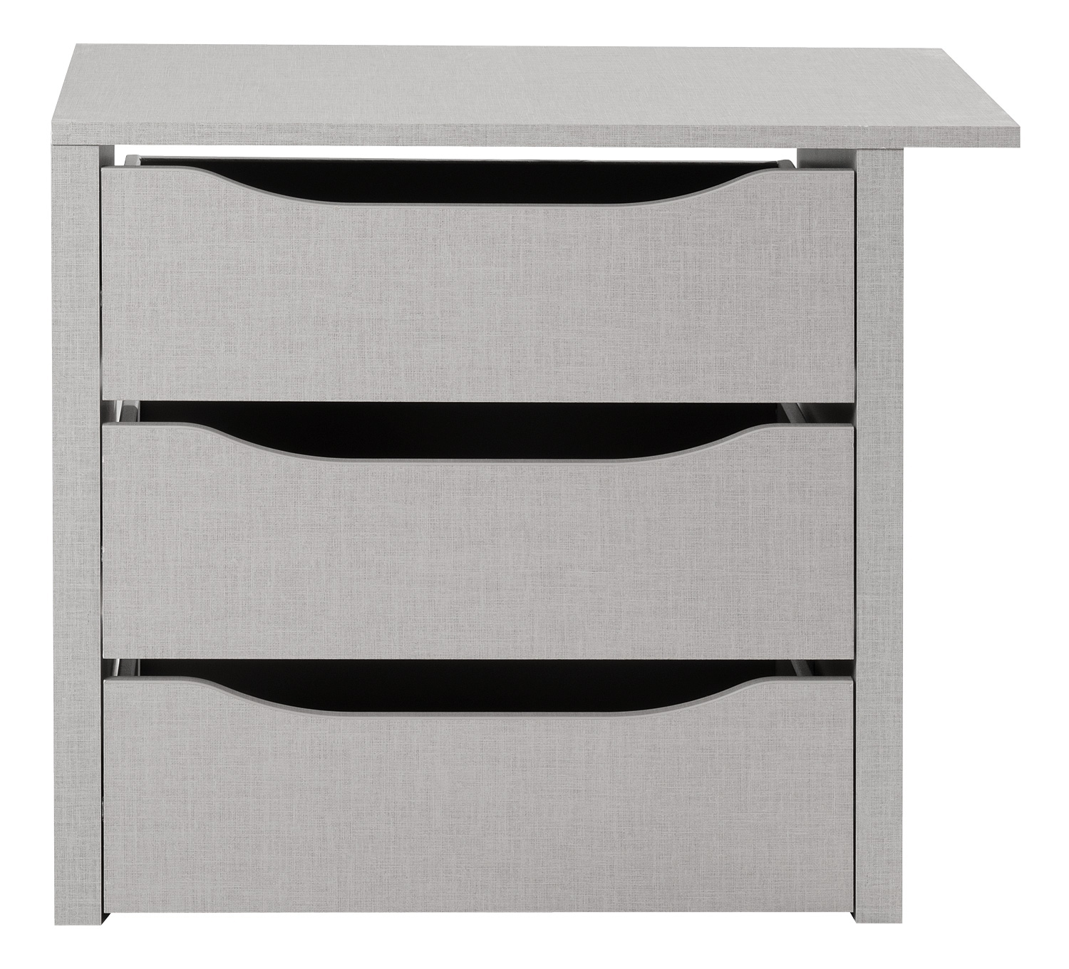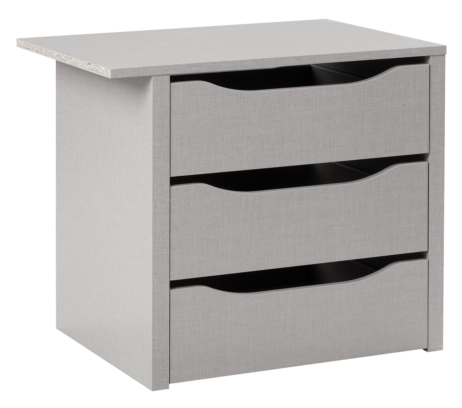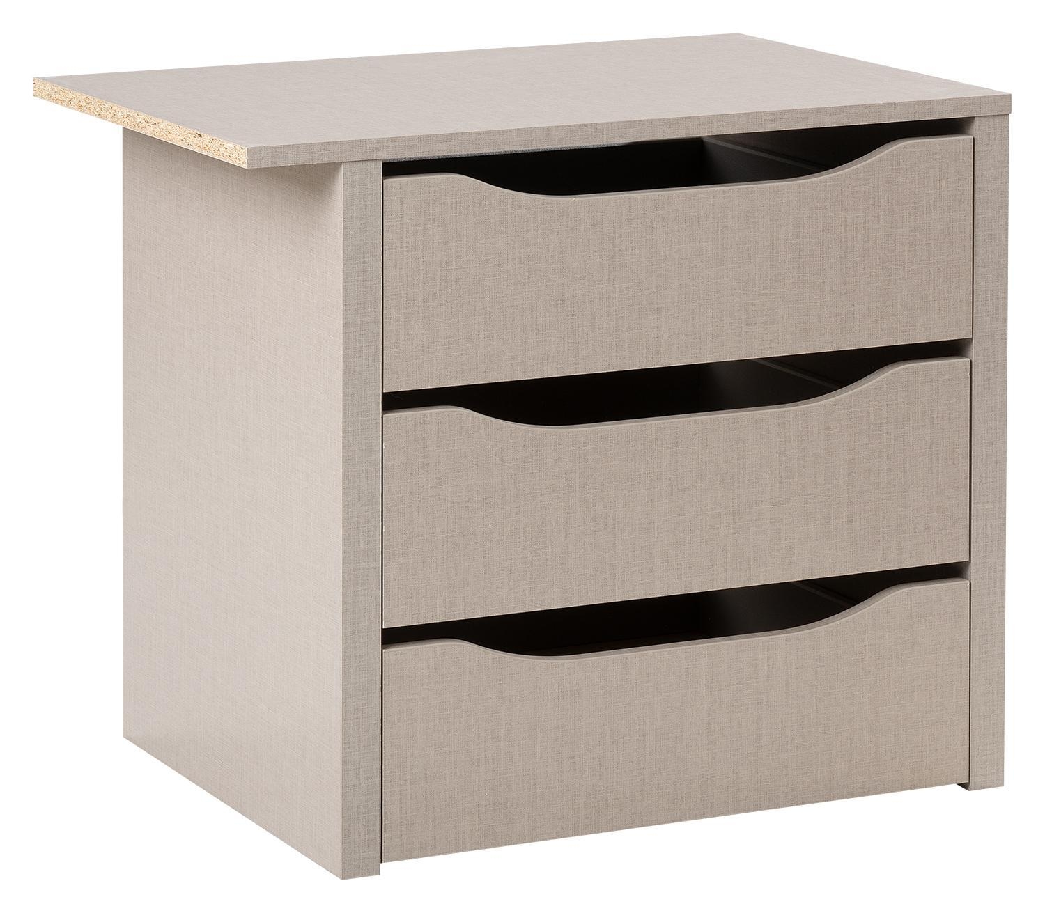 | Lieferumfang: | 1 Schubkasteneinsatz mit 3 Schüben für Kleiderschränke. Rechts oder links befindet sich ein Überstand der Abdeckplatte mit Breite 8 cm, je nach Art des Zusammenbaus |