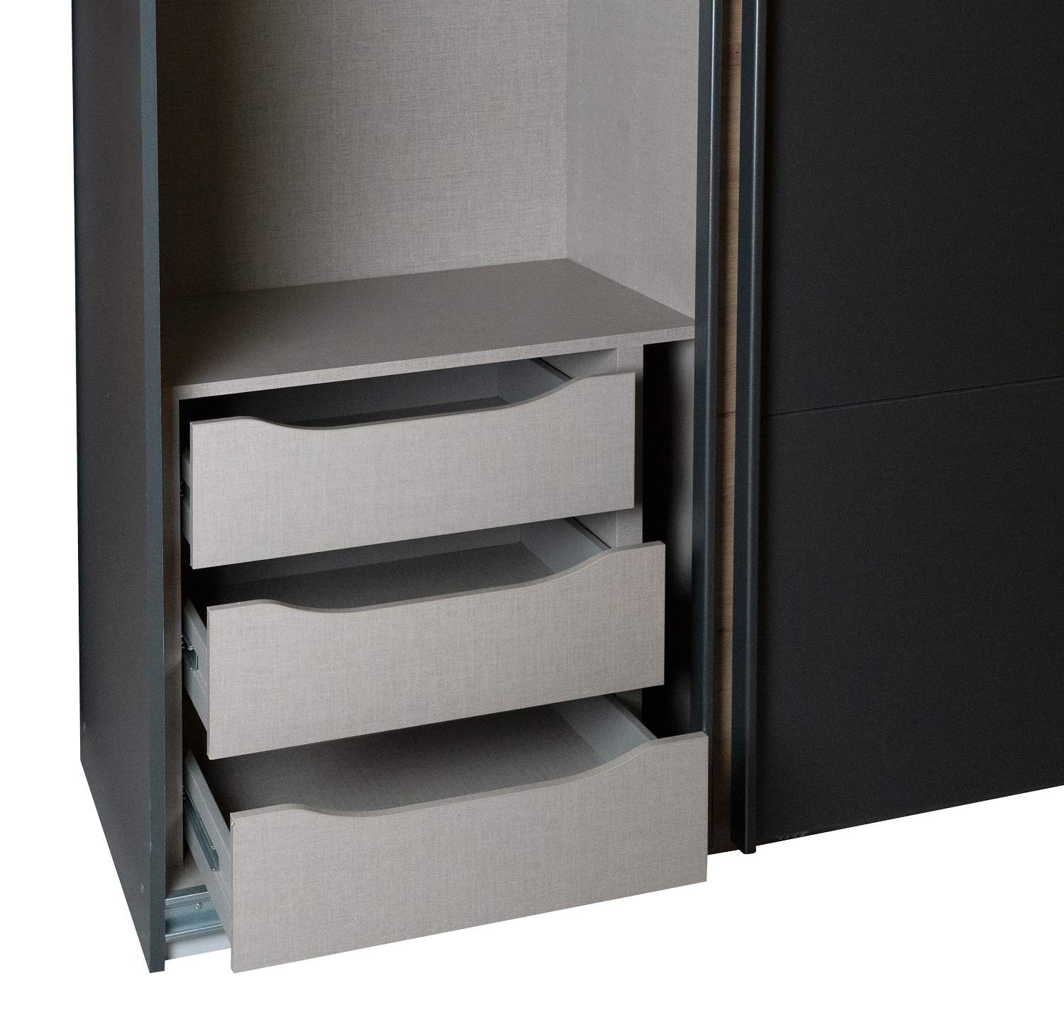 Der Schubkasteneinsatz ZOE benötigt in einigen Kleiderschränken eine Befestingung an den Seiten- und Rückwänden des Schrankes, das ist abhängig vom jeweiligen Kleiderschrank.