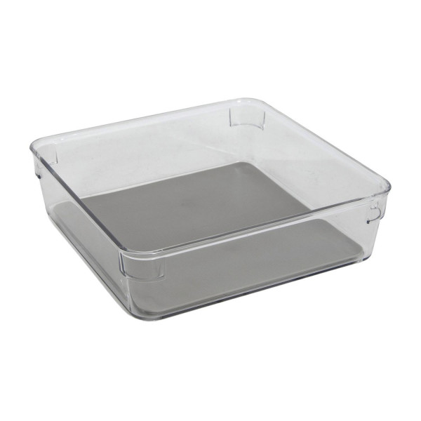 Der Schubladen-Organizer ORGELLA besteht aus transparentem Kunststoff und eignet sich zur geordneten Aufbewahrung von Kleinteilen und Küchenzubehör. Er ist mit einem rutschfesten Boden ausgestattet, der für einen sicheren Halt in der Schublade sorgt. Die Maße betragen 16 cm in der Breite, 5 cm in der Höhe und 16 cm in der Tiefe.
