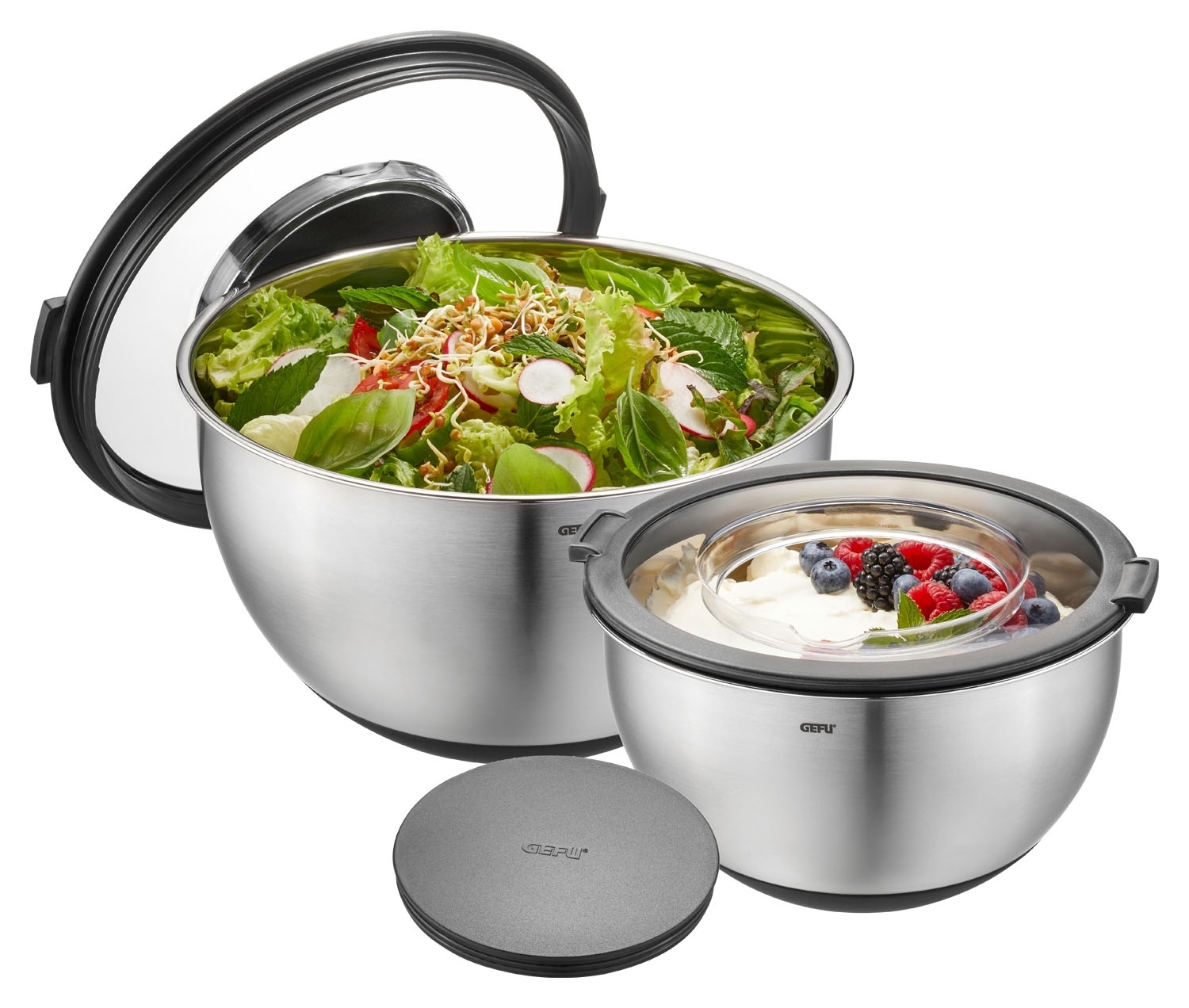 | Lieferumfang: | 2-tlg. Schüssel-Set: 1 Schüssel Ø 24 cm mit Deckel, 1 Schüssel Ø 20 cm mit Deckel |