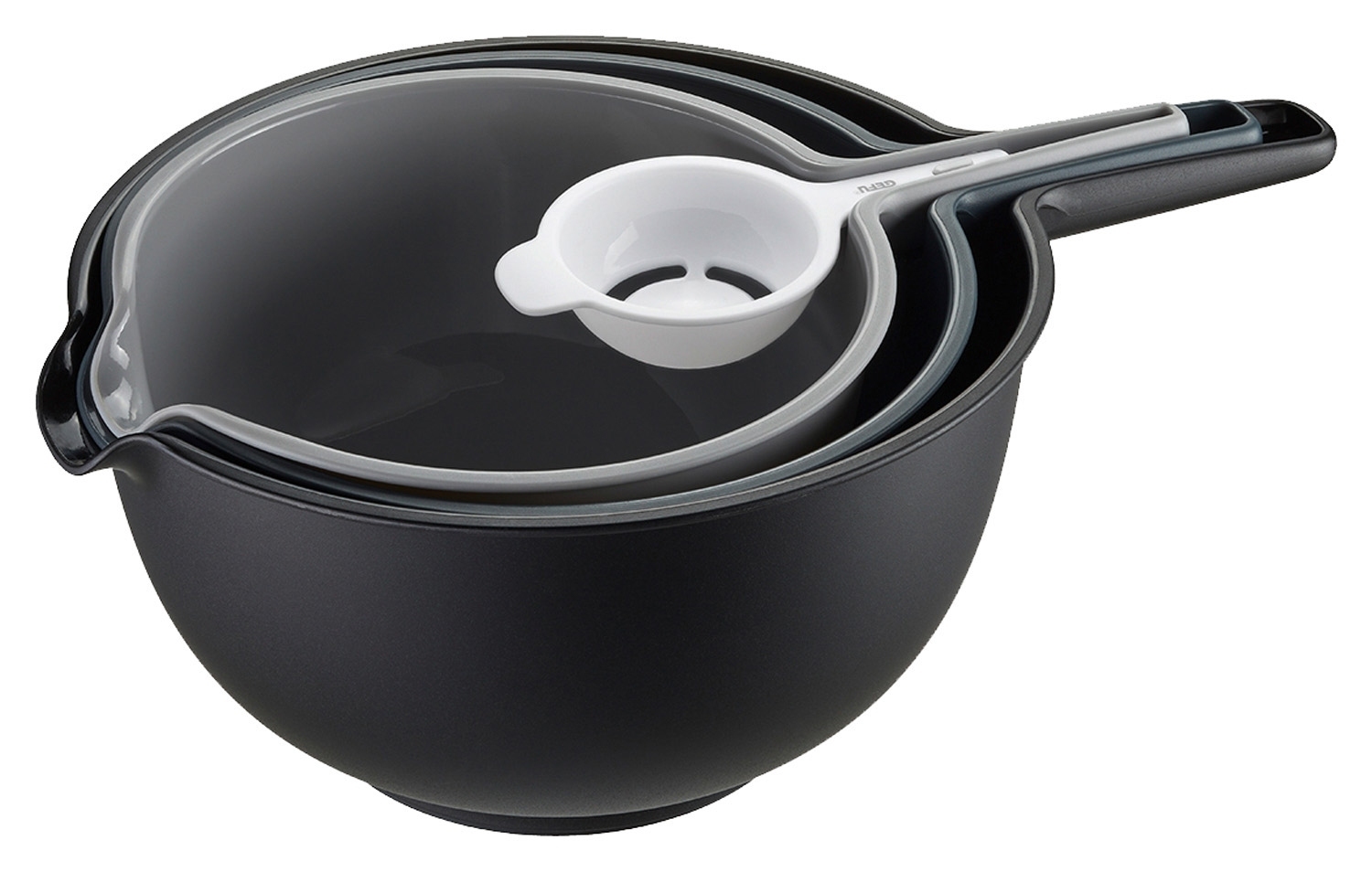 | Lieferumfang: | 4-tlg. Schüssel-Set: 1 Schüssel Ø 25 cm, 1 Schüssel Ø 21 cm, 1 Seiher Ø 23 cm, 1 Eitrenner |