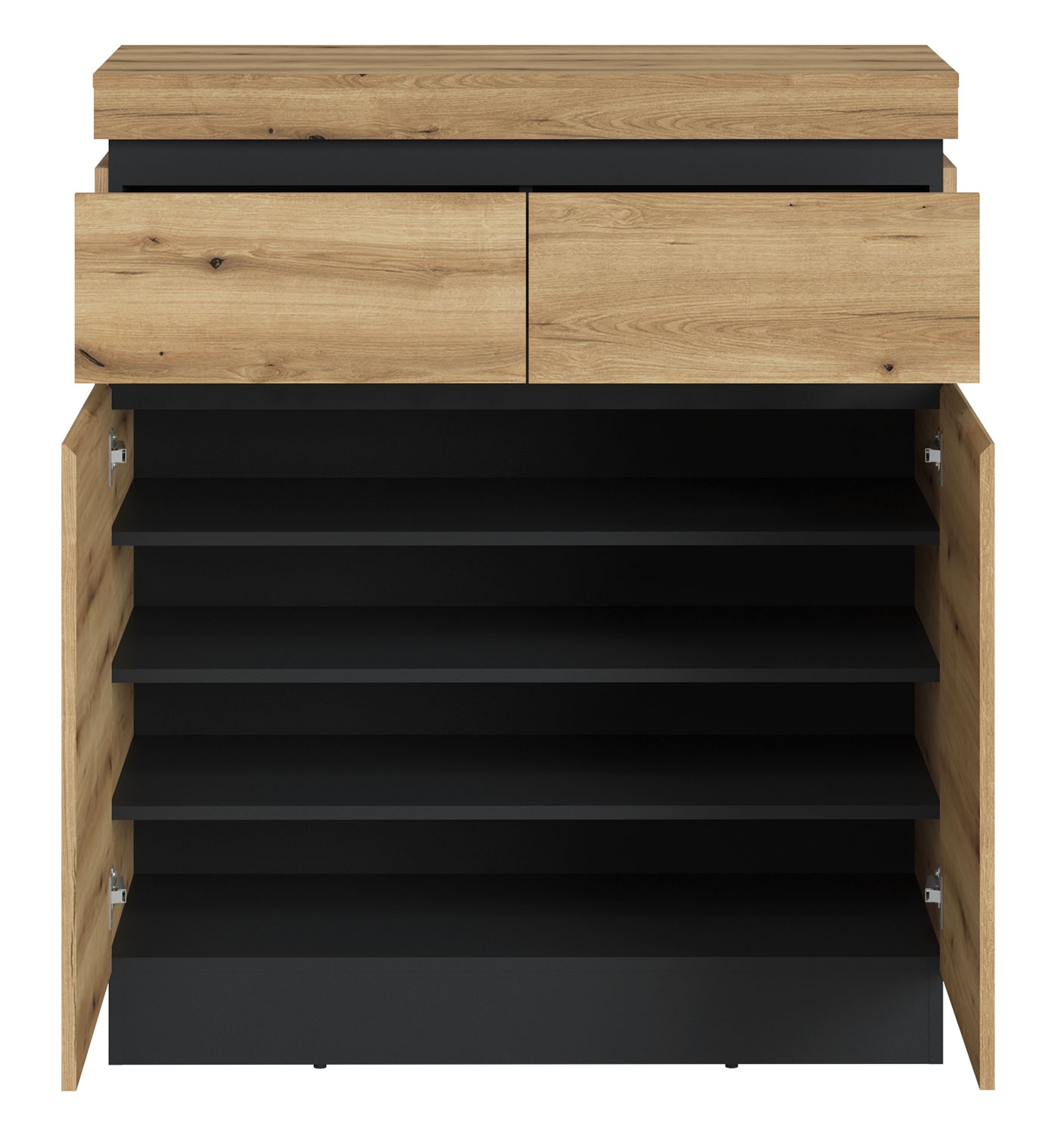 | Lieferumfang: | 1 Schuhschrank mit 2 Türen, 2 Schubladen und 3 Einlegeböden |