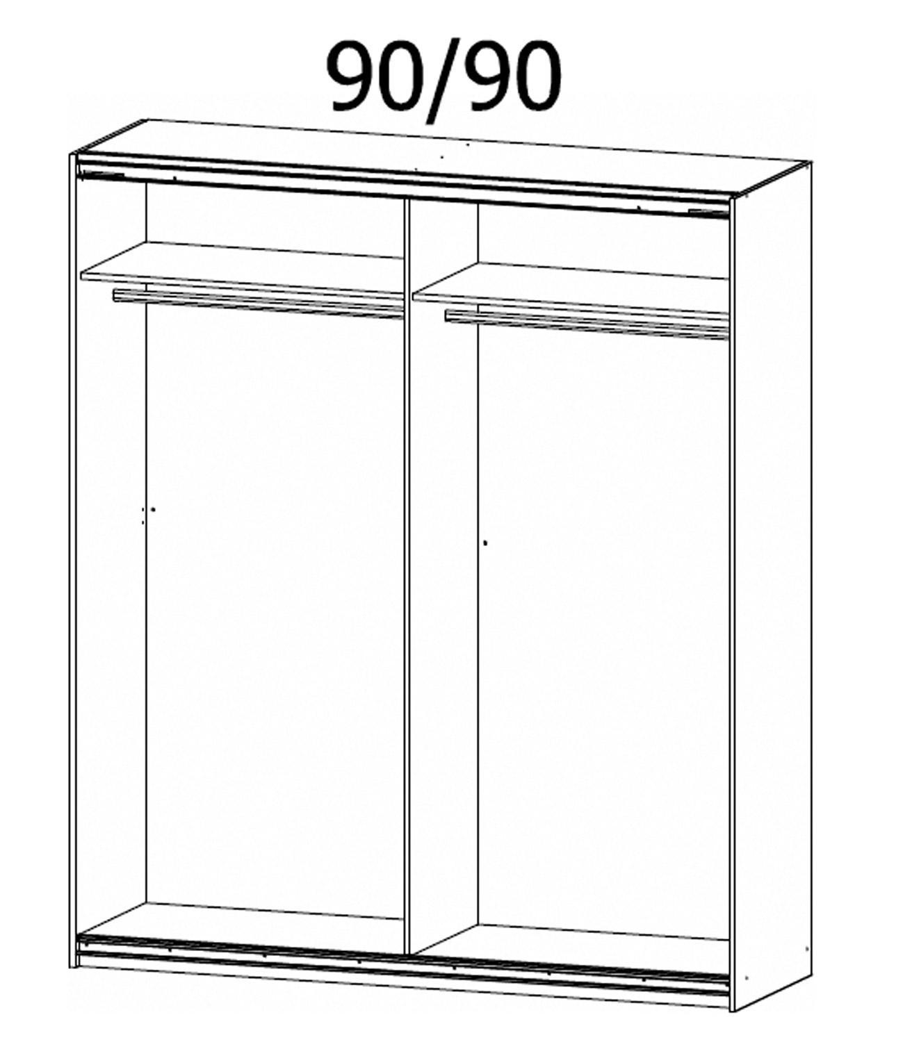 | Lieferumfang: | 1 Schwebetürenschrank mit 2 Türen, 2 Kleiderstangen und 2 Einlegeböden |