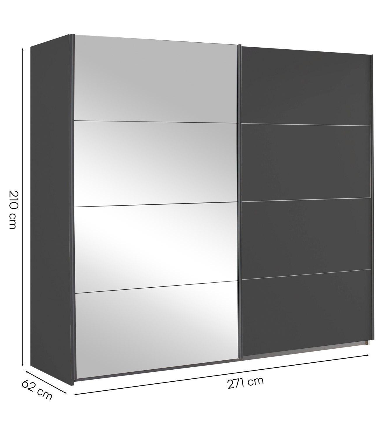 | Lieferumfang: | 1 Schwebetürenschrank mit 2 Türen, 3 Einlegeböden und 3 Kleiderstangen |