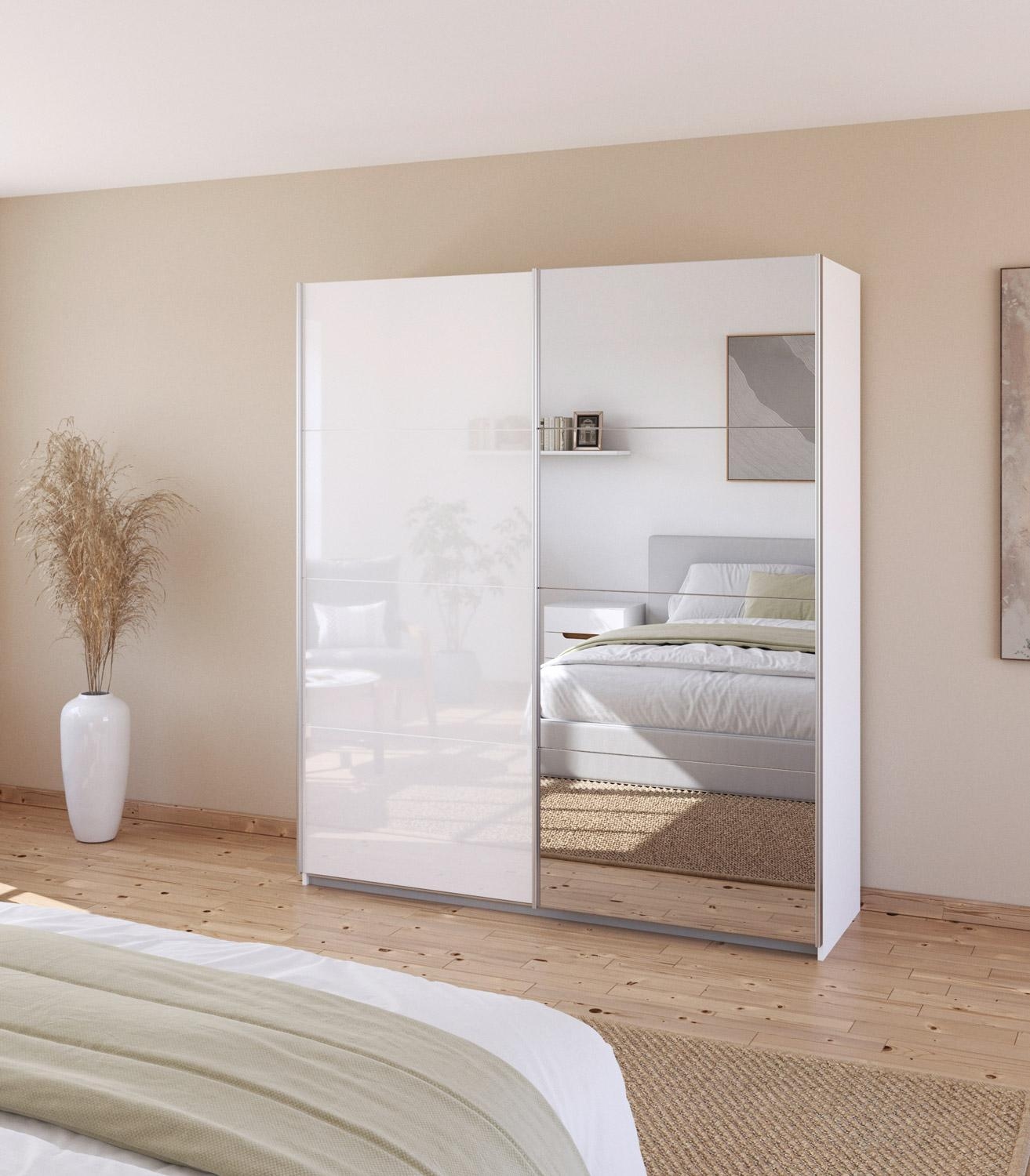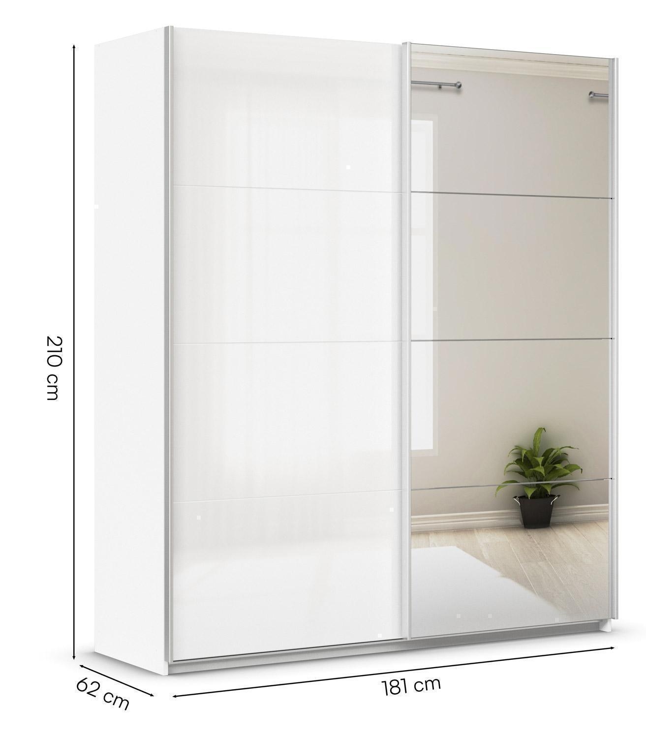 Alpinweiß - Weiß Hochglanz - 181 x 210 cm - mit Spiegel