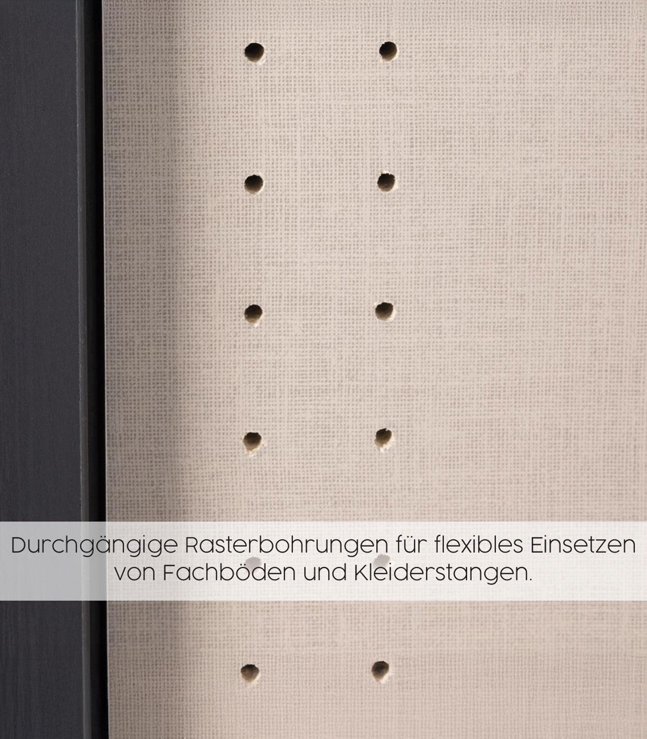 | Lieferumfang: | 1 Kleiderschrank mit Griffleisten, 2 Einlegeböden und 2 Kleiderstangen |