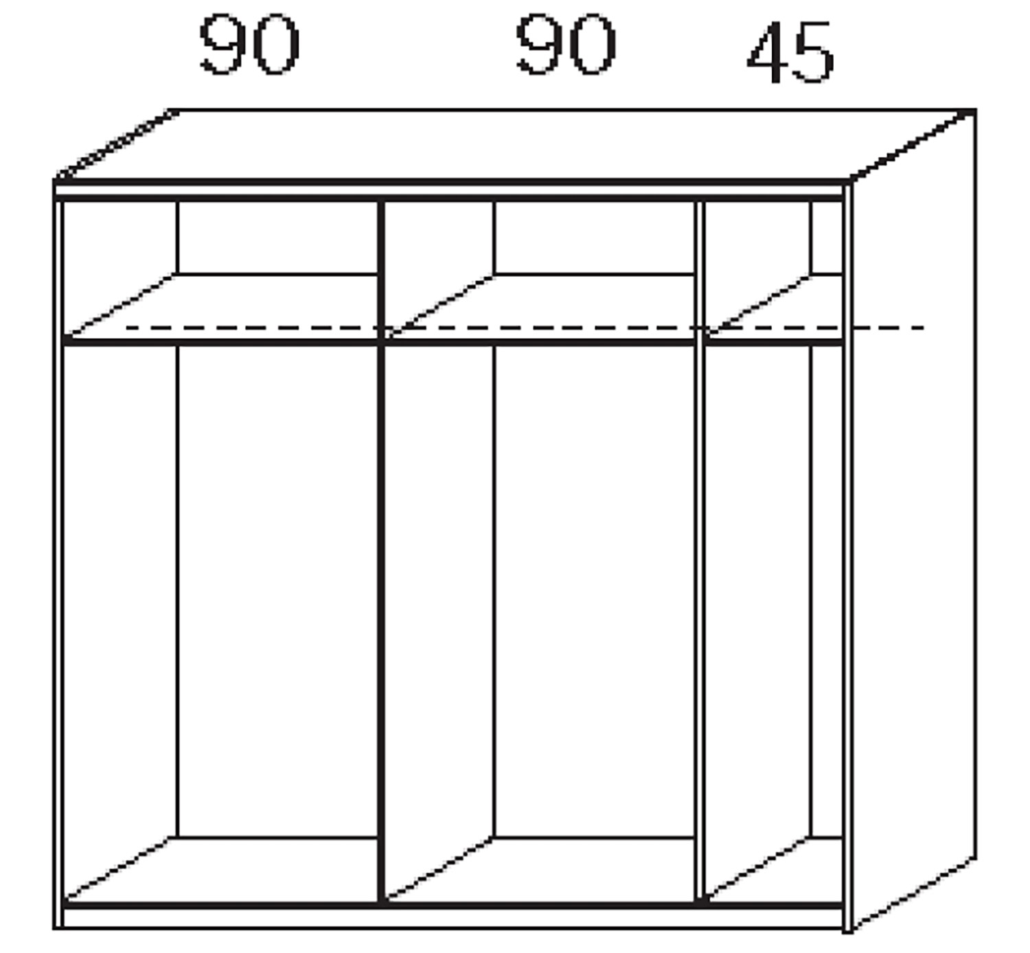 | Lieferumfang: | 1 Kleiderschrank mit 1 Spiegeltür, 1 Tür, 3 Einlegeböden und 3 Kleiderstangen |