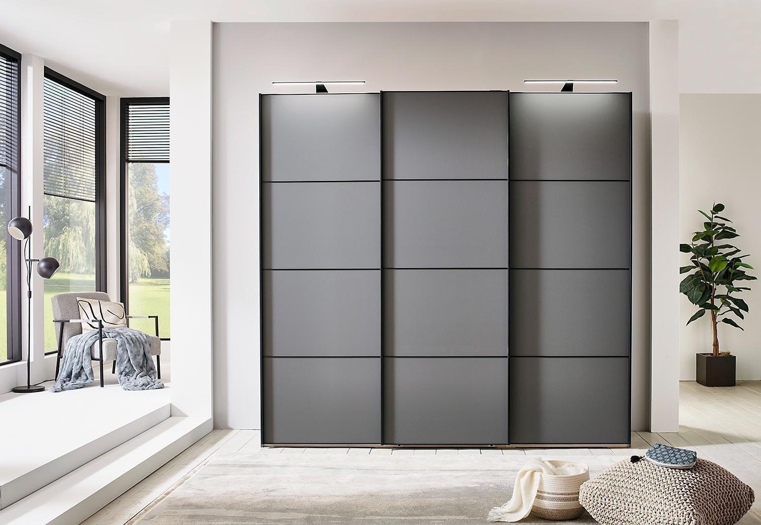 - Schwebetürenschrank in Lavagrau