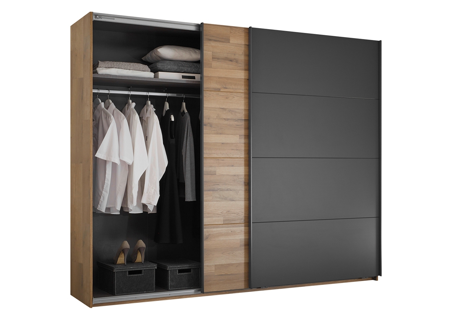 | Lieferumfang: | 1 Schwebetürenschrank mit 3 Kleiderstangen und 3 Einlegeböden |