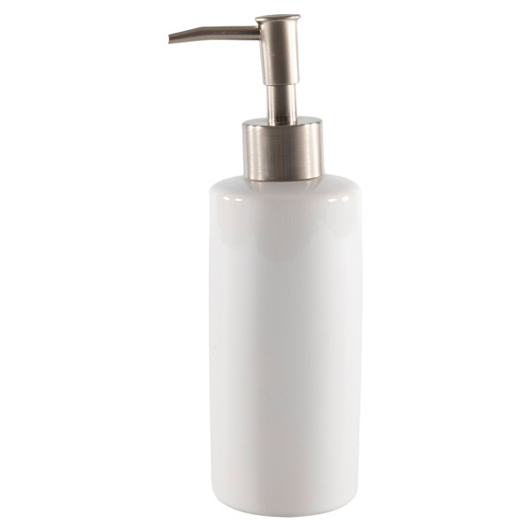 Der Seifenspender LIANELLA überzeugt durch sein schlichtes Design aus weißer Keramik und passt perfekt in jedes Badezimmer. Mit einer Füllmenge von 400 ml bietet er ausreichend Platz für Ihre Lieblingsseife. Der Pumpspender aus Edelstahl sorgt für eine einfache und hygienische Anwendung. Dank des Durchmessers von 7 cm und einer Höhe von 20 cm ist der Spender kompakt und lässt sich leicht nachfüllen.