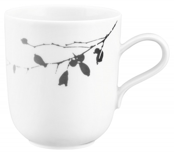Weiß - Schwarz - 400 ml - Porzellan - Blumenmotiv