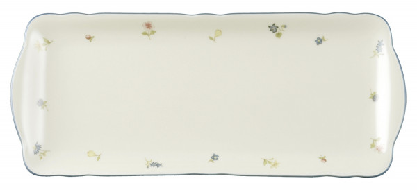Elfenbeinfarben - Porzellan - mit blauem Rand - mit Streublumenmotiv - 35 x 15 cm