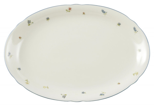 Elfenbeinfarben - Porzellan - mit blauem Rand - mit Streublumenmotiv - 34 x 26 cm