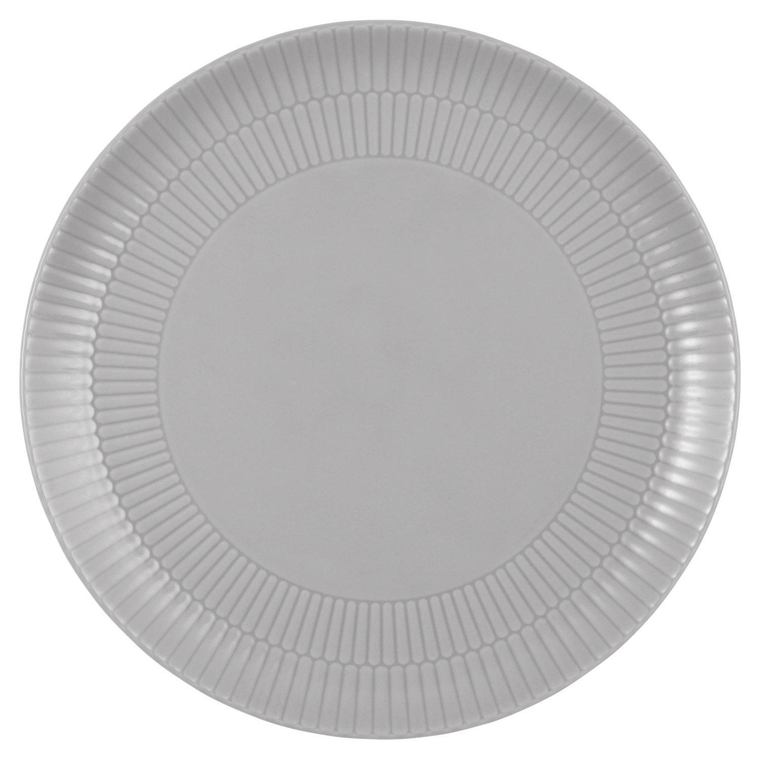 Der Speiseteller AMINA der Marke Seltmann besteht aus Porzellan in Silbergrau und ist mit einem dezenten Reliefmuster am Rand gestaltet. Mit einem Durchmesser von 27,5 cm und einer Höhe von 2,5 cm eignet sich der Teller für vielfältige Einsatzmöglichkeiten. Er ist sowohl backofenfest als auch mikrowellengeeignet, wodurch die Nutzung flexibel und alltagstauglich ist. Zudem ist der Teller spülmaschinenfest, was eine einfache Reinigung ermöglicht.