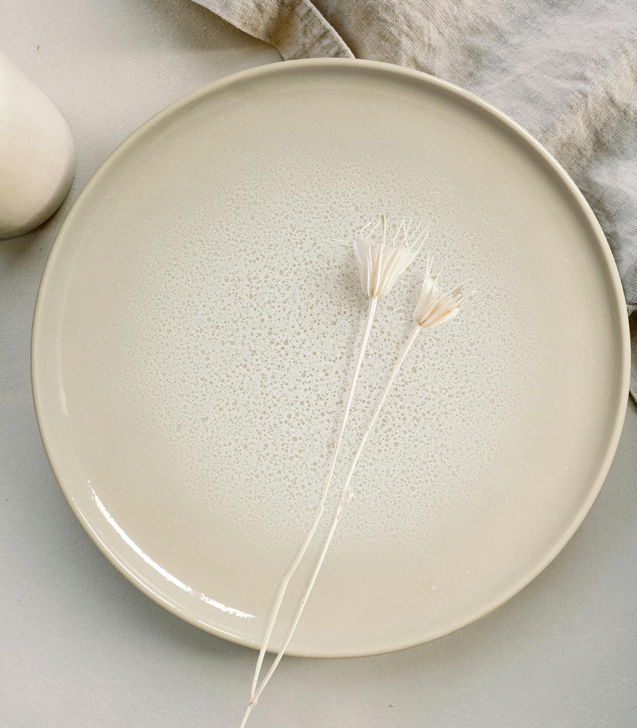 Der Speiseteller SENTO HOME AURA von Seltmann in klassischem Creme überzeugt mit einem modernen Farbspritzer-Muster in einem dezenten Cremeton. Mit einem Durchmesser von 27 cm bietet er ausreichend Platz für Hauptgerichte und kreative Arrangements. Gefertigt aus hochwertigem Porzellan verbindet er stilvolle Optik mit hoher Alltagstauglichkeit. Der Teller ist spülmaschinenfest und mikrowellengeeignet sowie kühlschrank- und gefrierschrankgeeignet. Zudem ist er ofenfest und vielseitig einsetzbar in Küche und Essbereich.