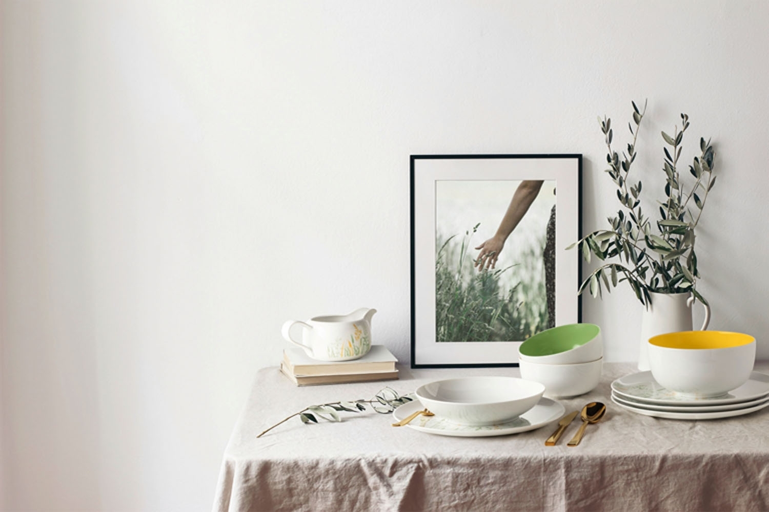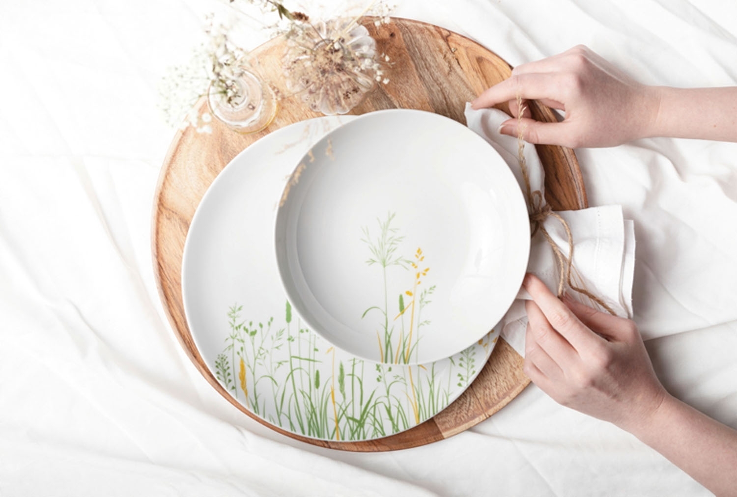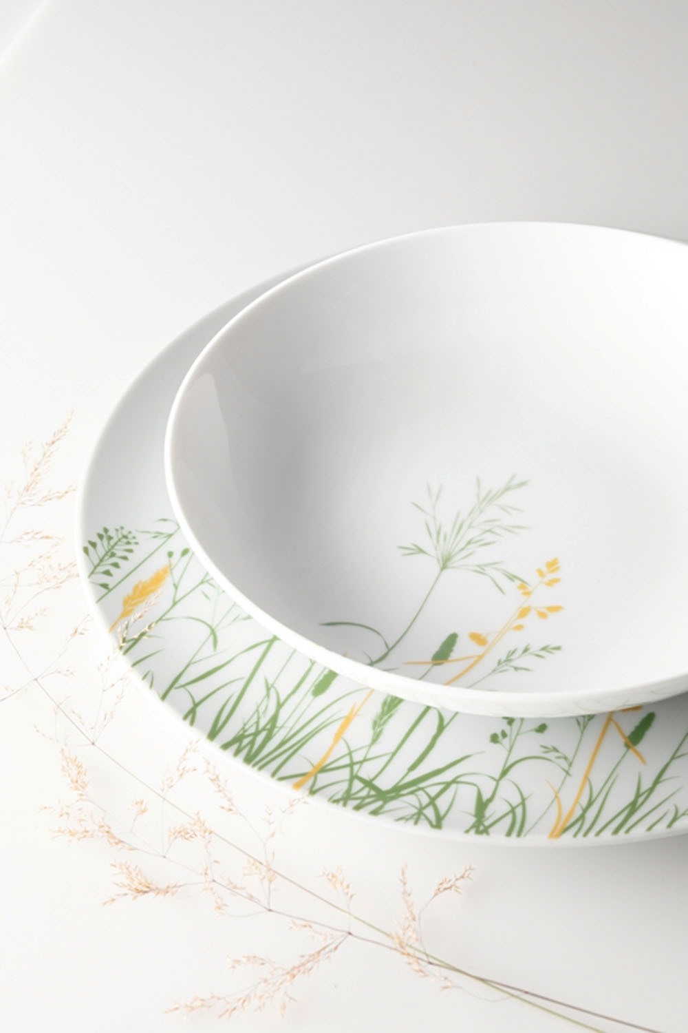 Weiß - Grün - Gelb - Ø 21 cm - Porzellan - Gräsermotiv
