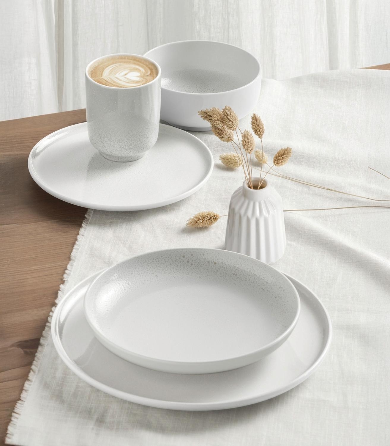 Der Suppenteller SENTO HOME AURA von Seltmann in klassischem Weiß überzeugt mit einem modernen Farbspritzer-Muster in einem dezenten Weißton. Mit einem Durchmesser von 21 cm eignet er sich ideal für Suppen, Pasta und andere Gerichte. Gefertigt aus hochwertigem Porzellan verbindet er stilvolle Optik mit hoher Alltagstauglichkeit. Der Teller ist spülmaschinenfest und mikrowellengeeignet sowie kühlschrank- und gefrierschrankgeeignet. Zudem ist er ofenfest und vielseitig einsetzbar in Küche und Essbereich.