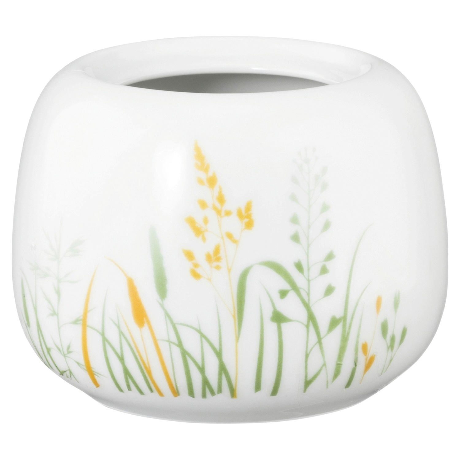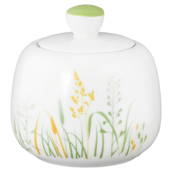 Weiß - Grün - Gelb - 260 ml - Porzellan - Gräsermotiv - mit Deckel