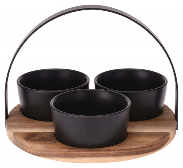| Lieferumfang: | 4-tlg Servier-Set: 1 Tablett mit Henkel, 3 schwarze Keramikschalen |