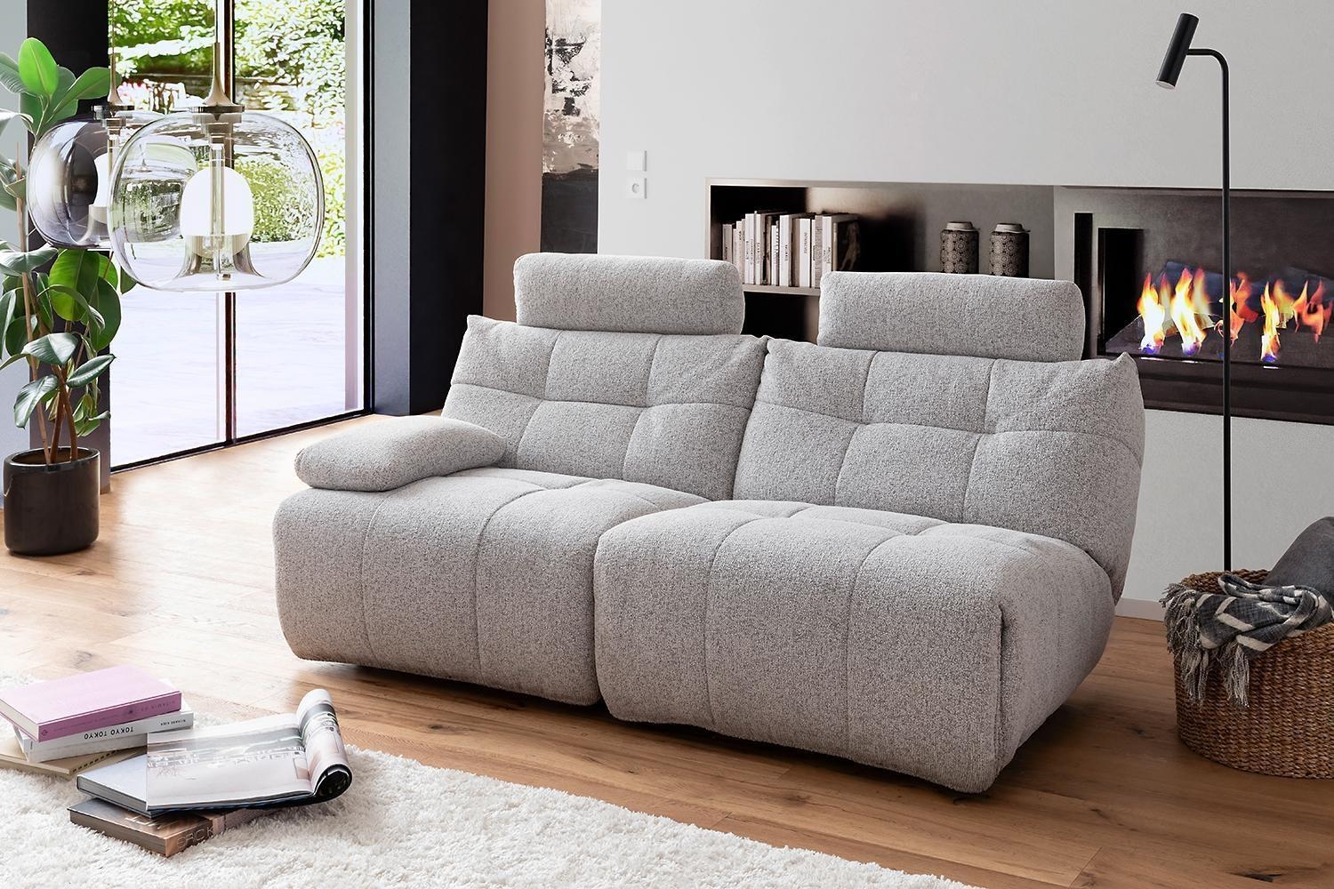 Sitz- und Rückenfläche verfügen über eine Polsterung mit Taschenfederkern. Die maximale Belastbarkeit beträgt 110 Kilogramm. Das Bedienelement für die motorischen Funktionen befindet sich auf der davorstehend linken Seite.