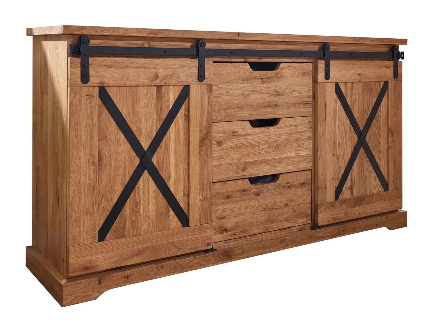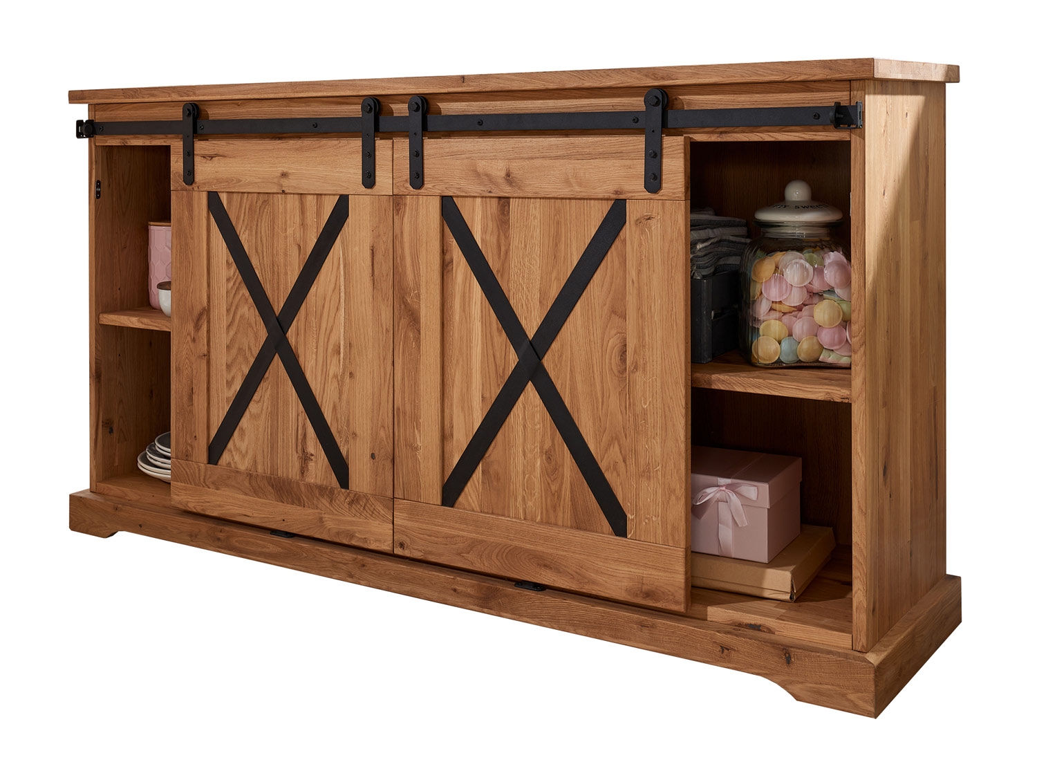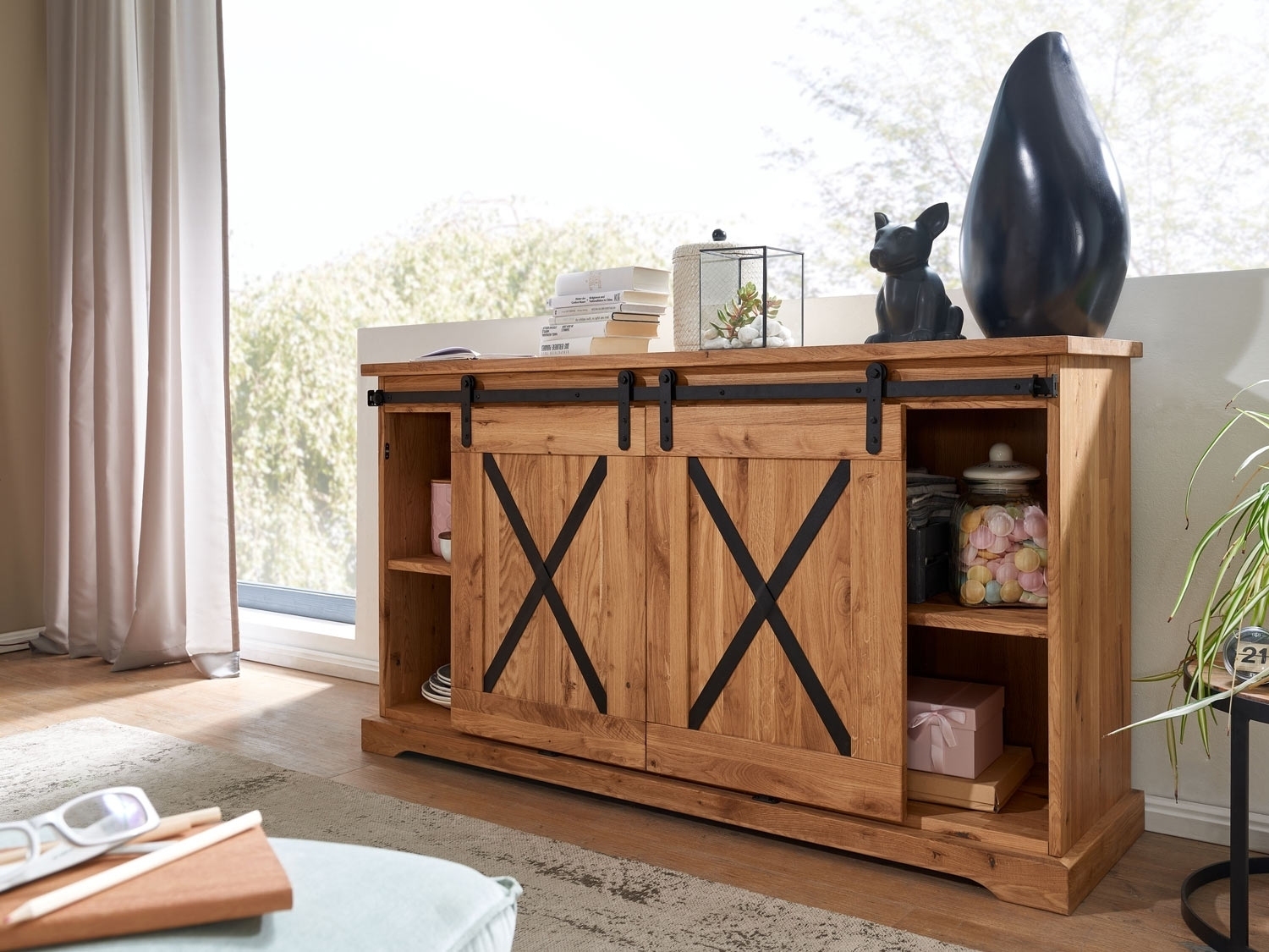 Wildeiche massiv geölt - B 150 cm - 2 Rolltüren - 3 Schubladen