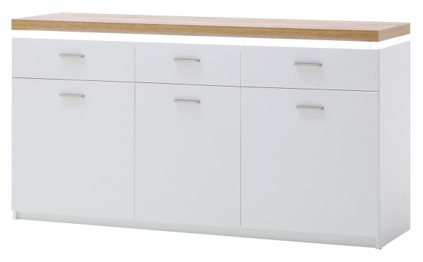 Weiß - Wotan Eiche Dekor - B 156 cm - 3 Türen - 3 Schublade
