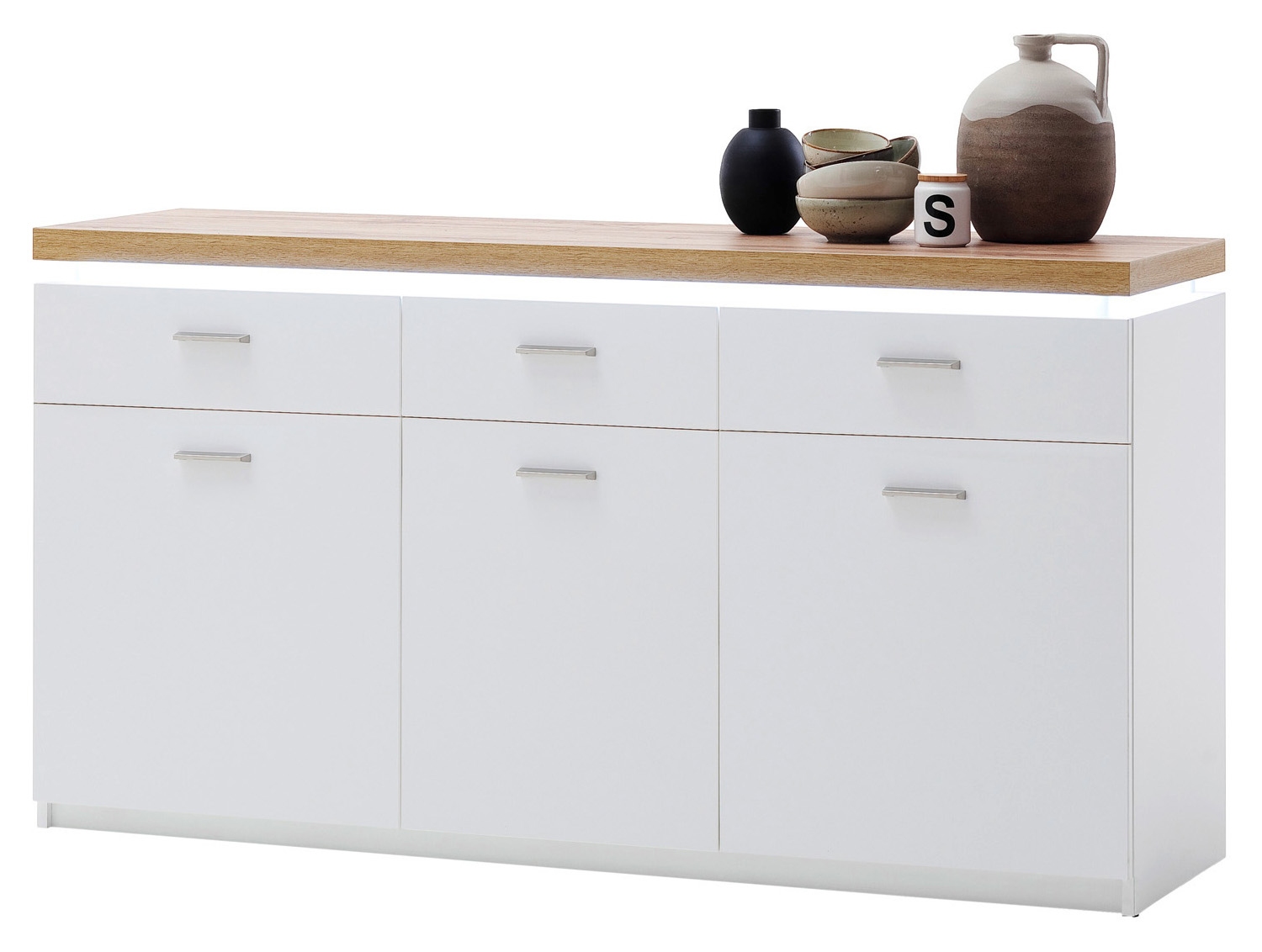 | Lieferumfang: | 1 Sideboard mit 3 Einlegeböden und einer Deckplatte mit LED-Beleuchtung |