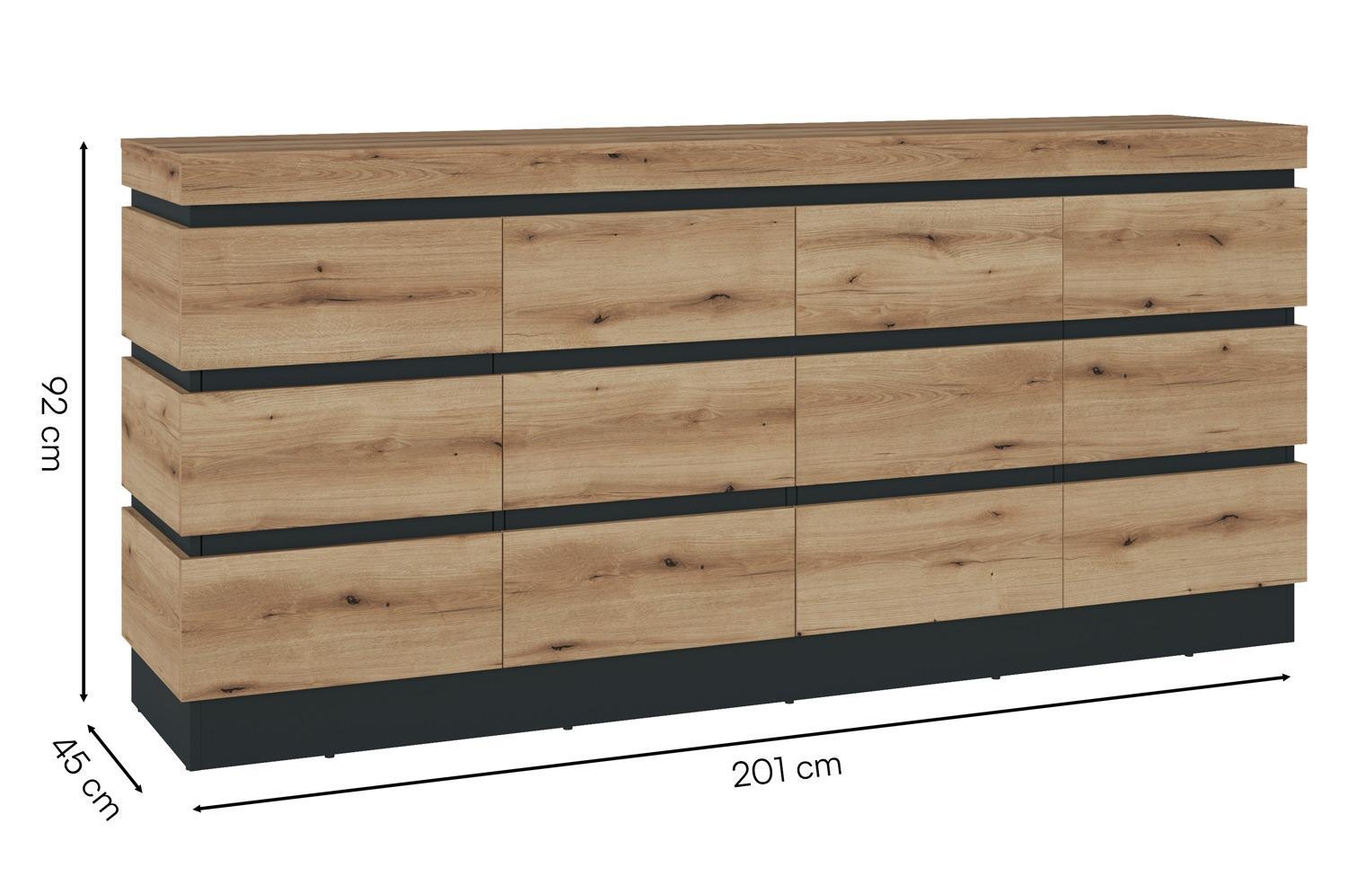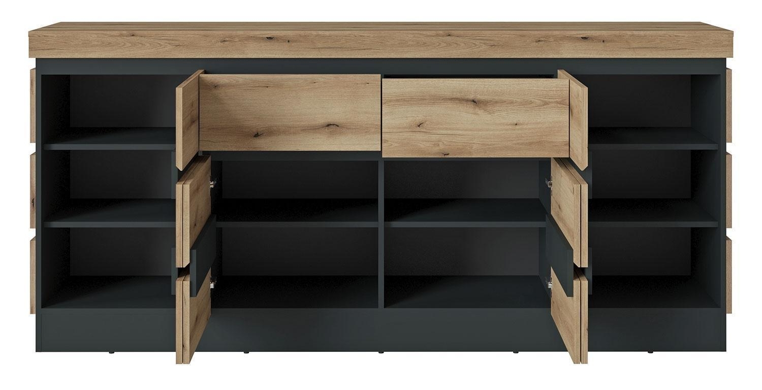 Coast Evoke Eiche Dekor - Grau - B 201 cm - 4 Türen - 2 Schubladen