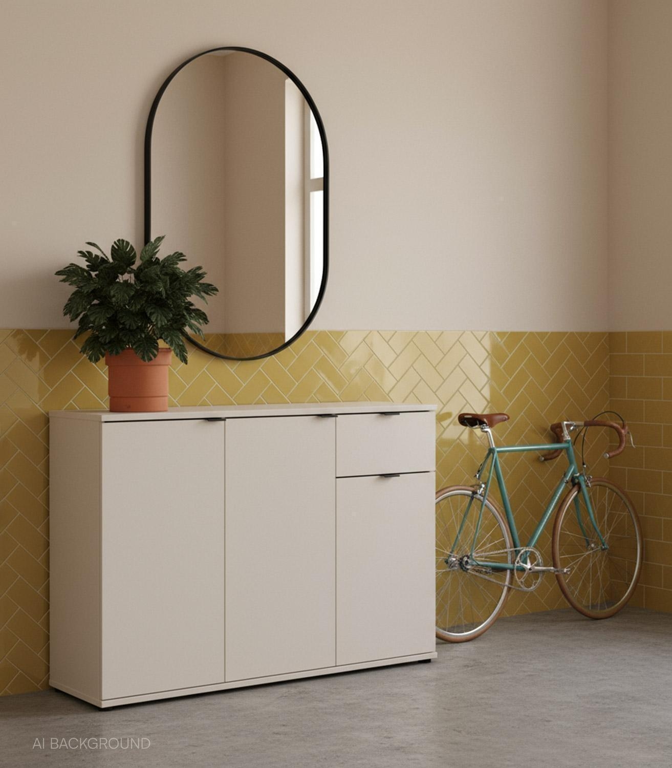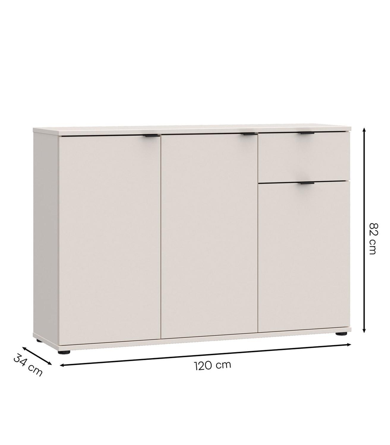 120 x 82 cm - 3 Türen - 1 Schublade - Sandfarben