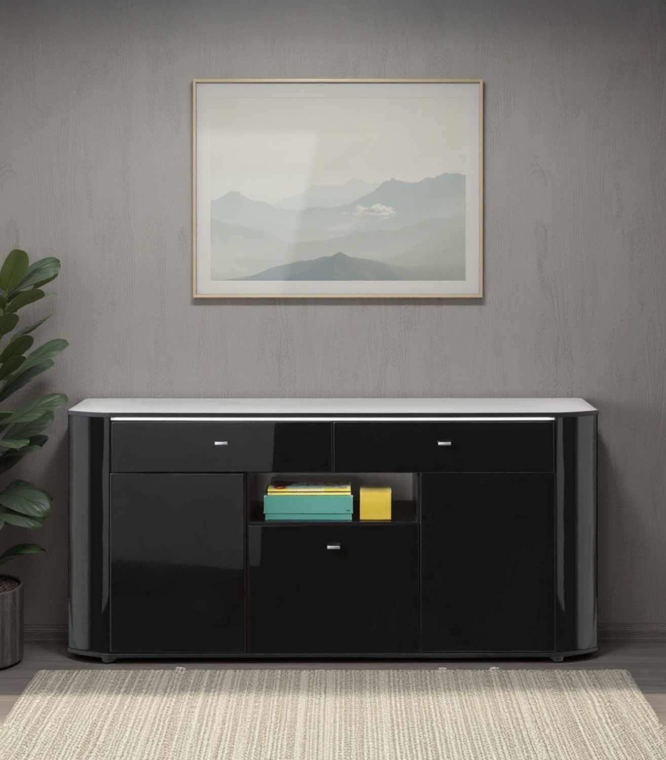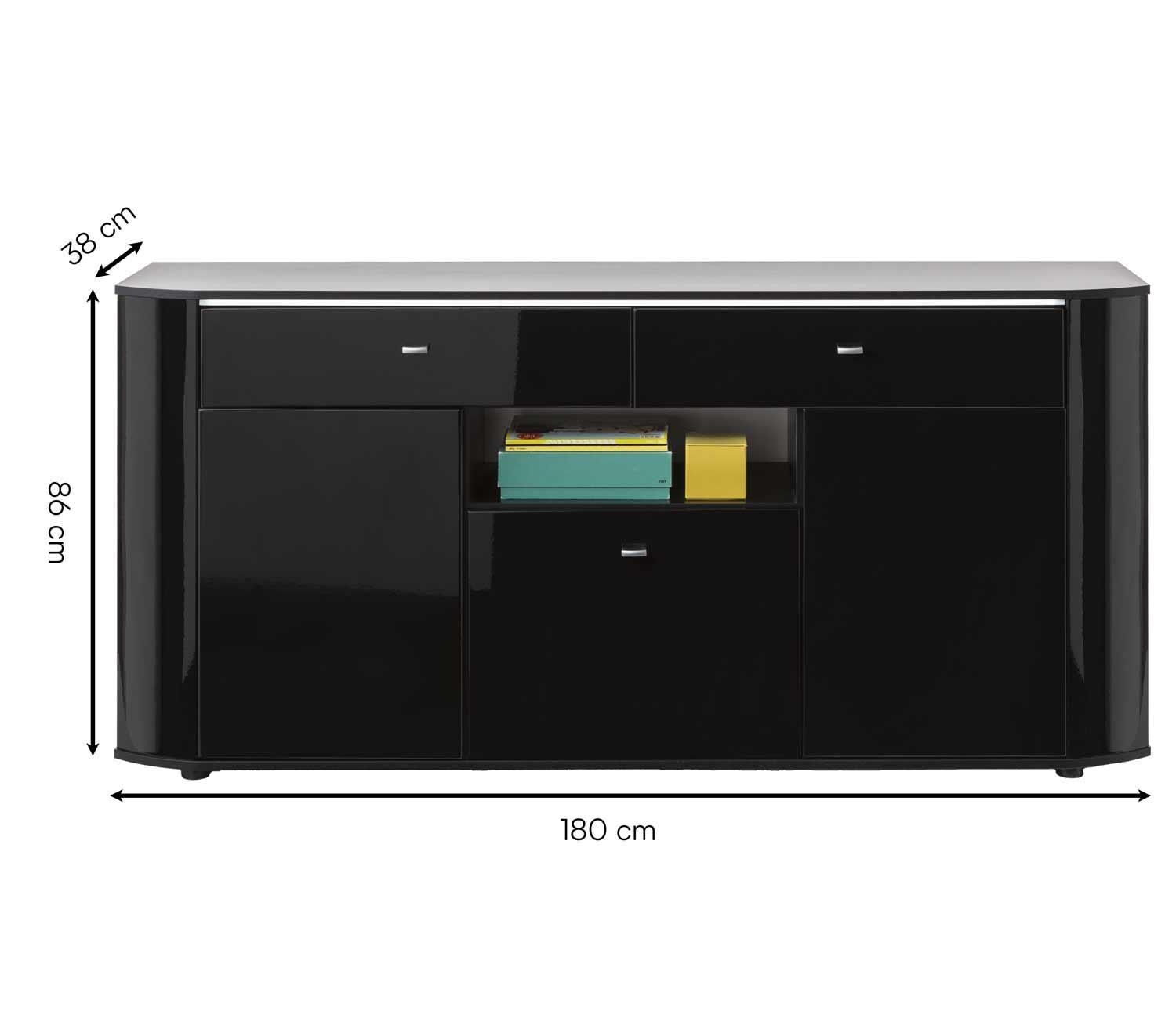 | Lieferumfang: | 1 Sideboard mit 3 Einlegeböden und LED-Beleuchtung mit Stecker und Trittschalter |