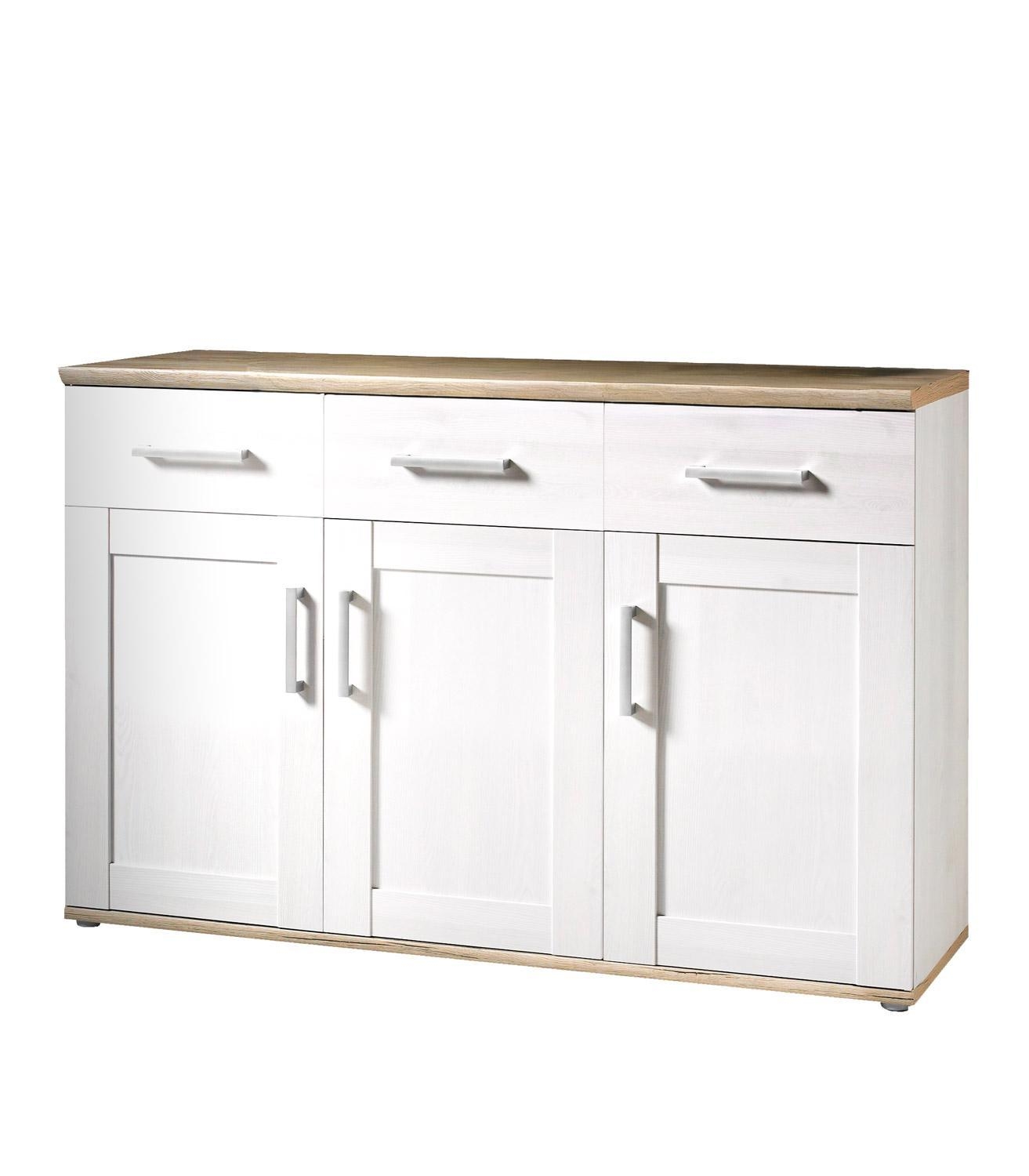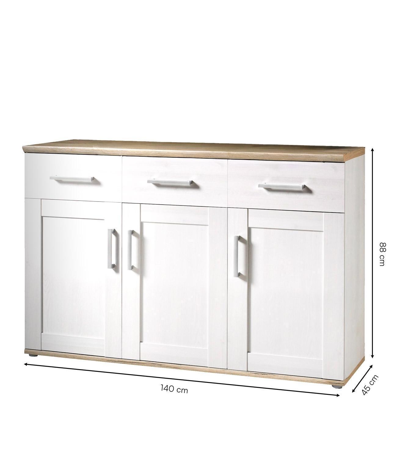 Sibiu Lärche Dekor - Weiß - B 140 cm - 3 Türen - 3 Schubladen