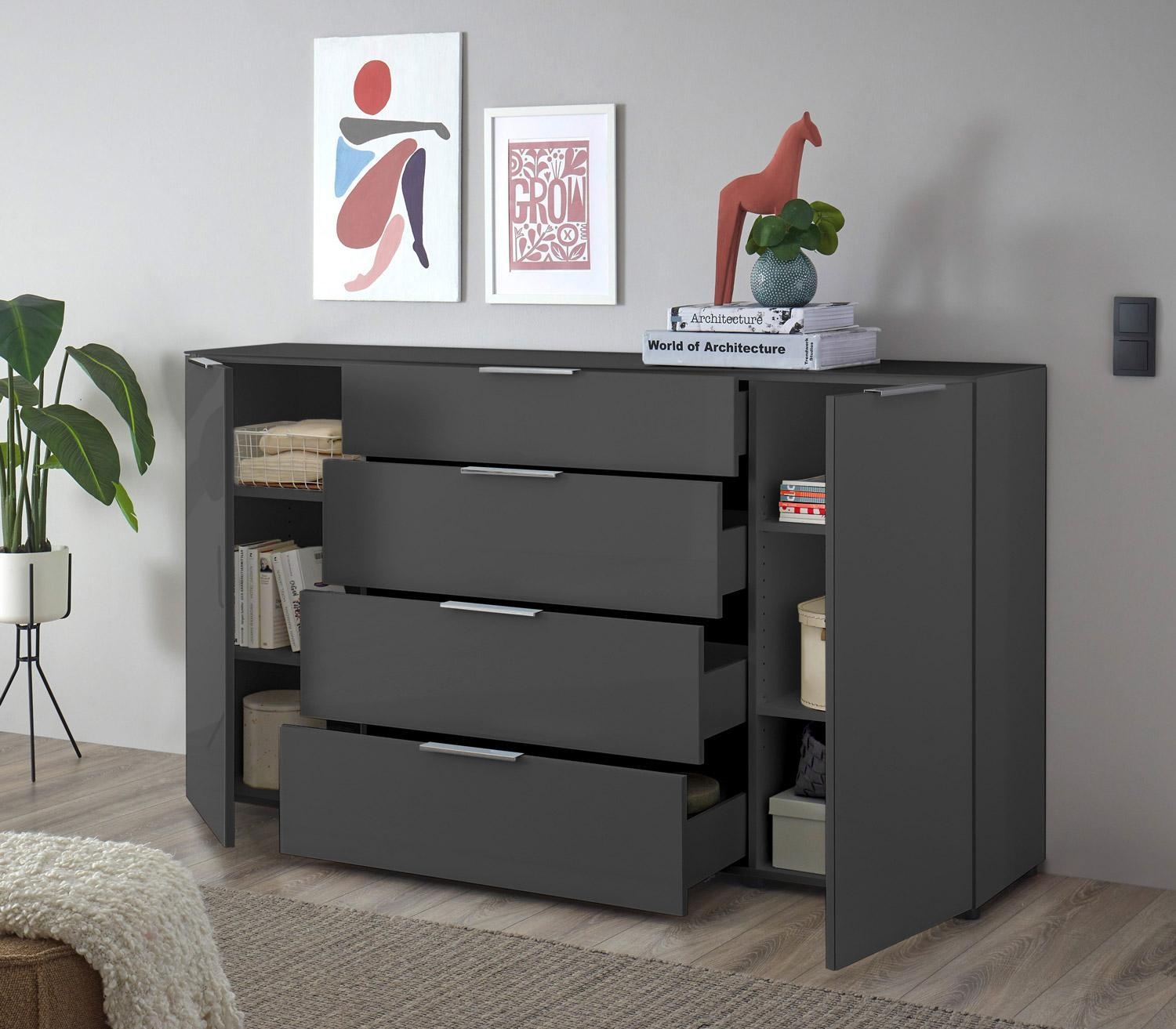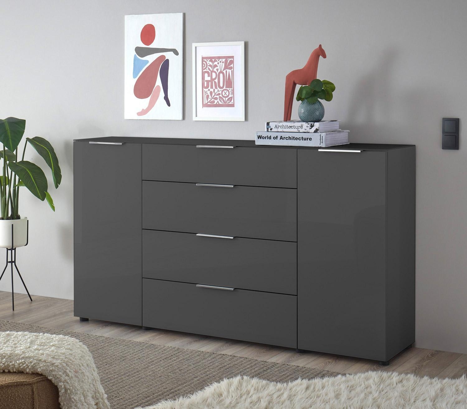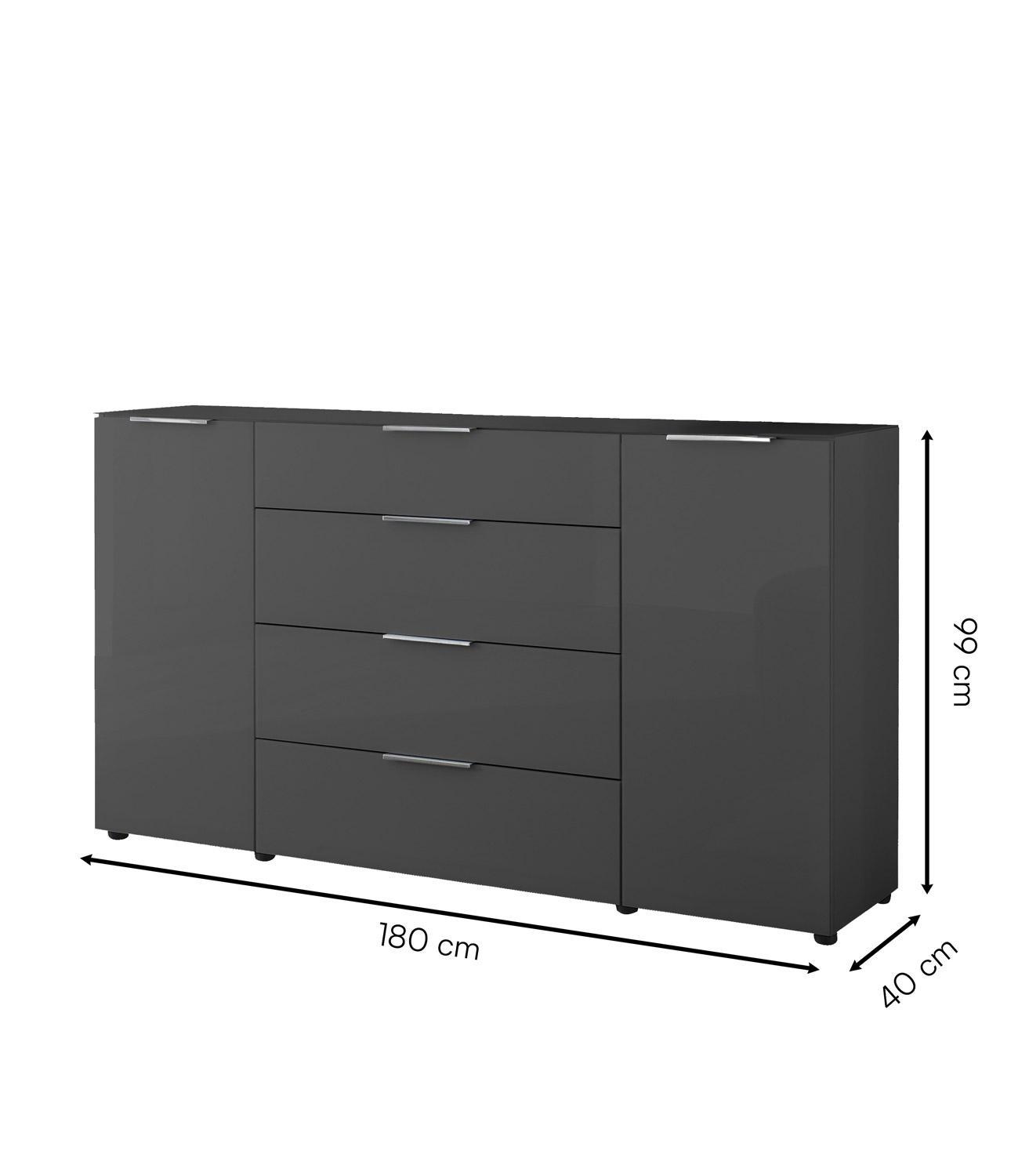 180 x 99 cm - 2 Türen - 4 Schubladen - Anthrazitglas - Anthrazit matt