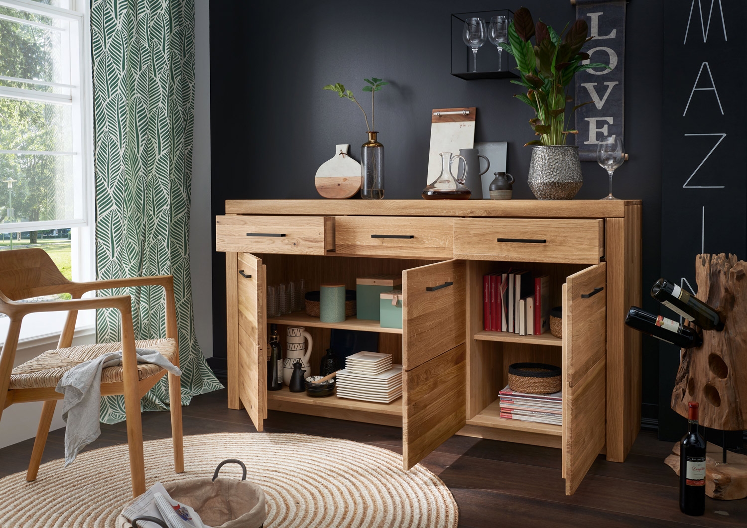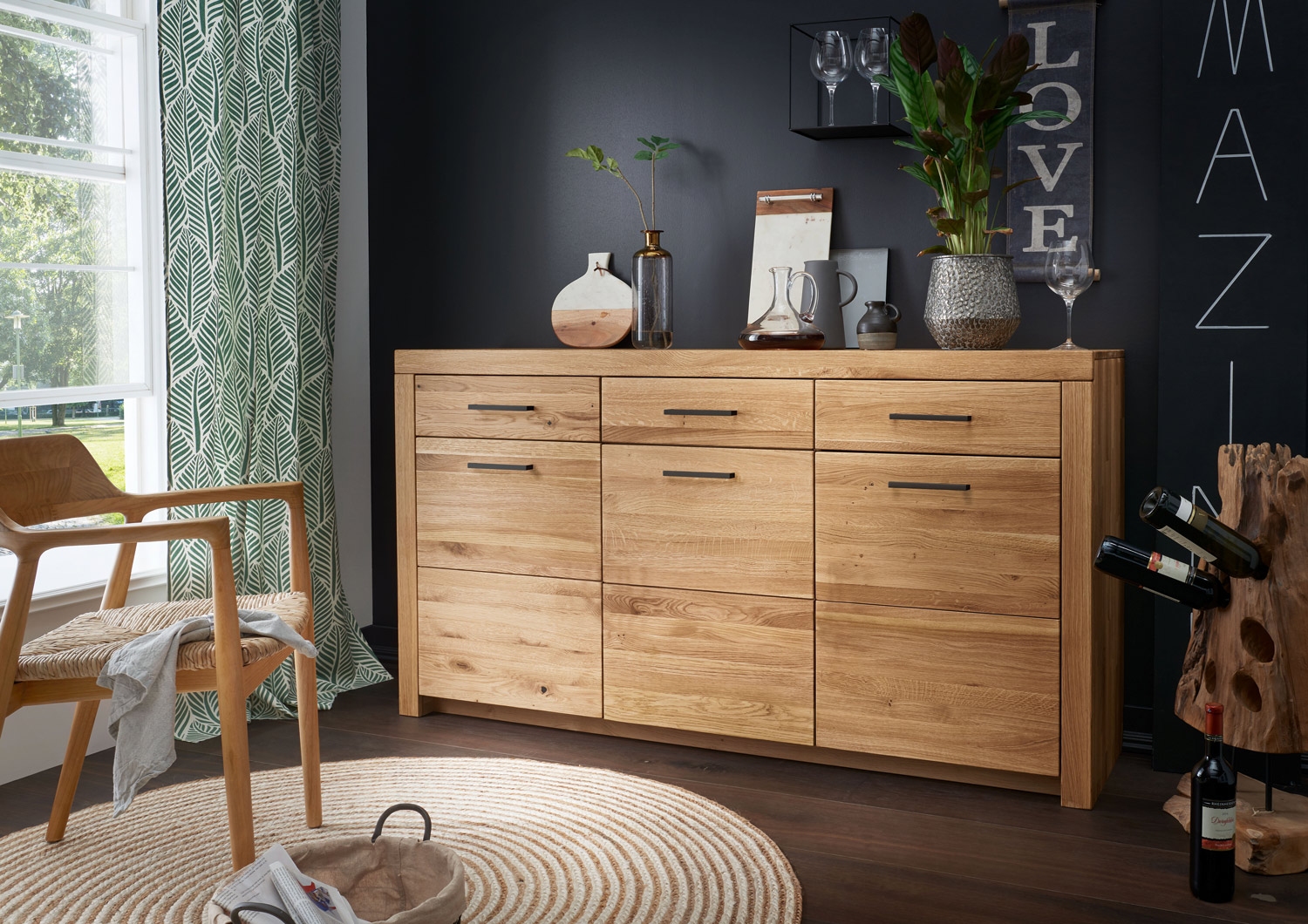 Wildeiche massiv geölt - B 170 cm - 3 Türen - 3 Schubladen