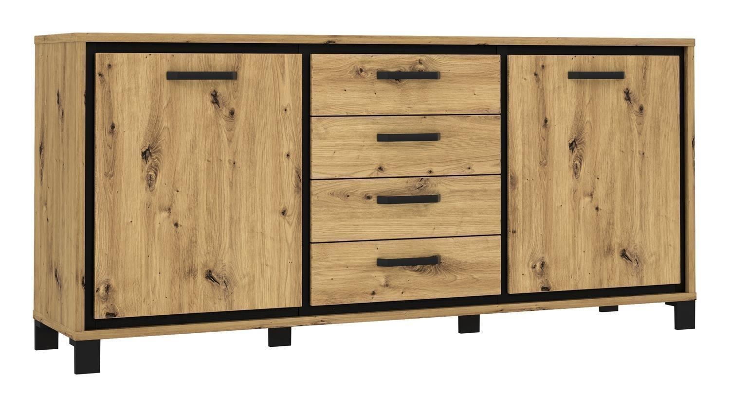 Artisan Eiche Dekor - B 179 cm - Absetzungen in Schwarz - 2 Türen - 4 Schubladen