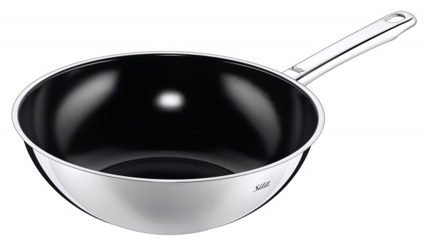 - Wokpfanne aus poliertem Edelstahl 18/10