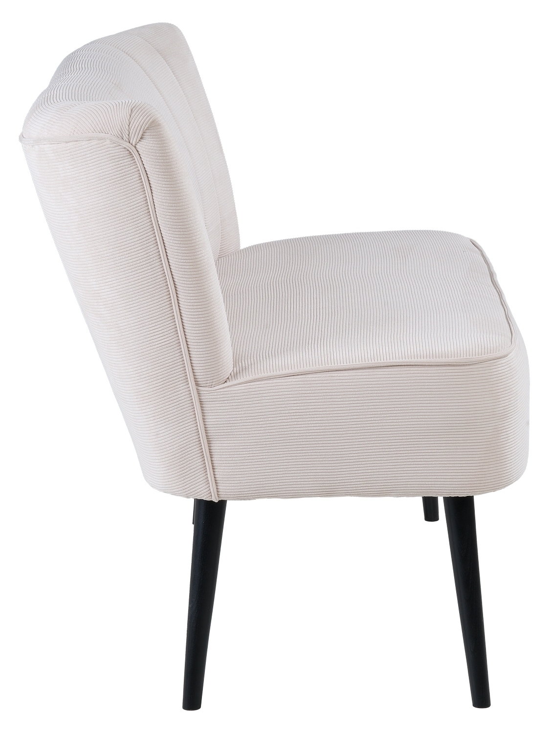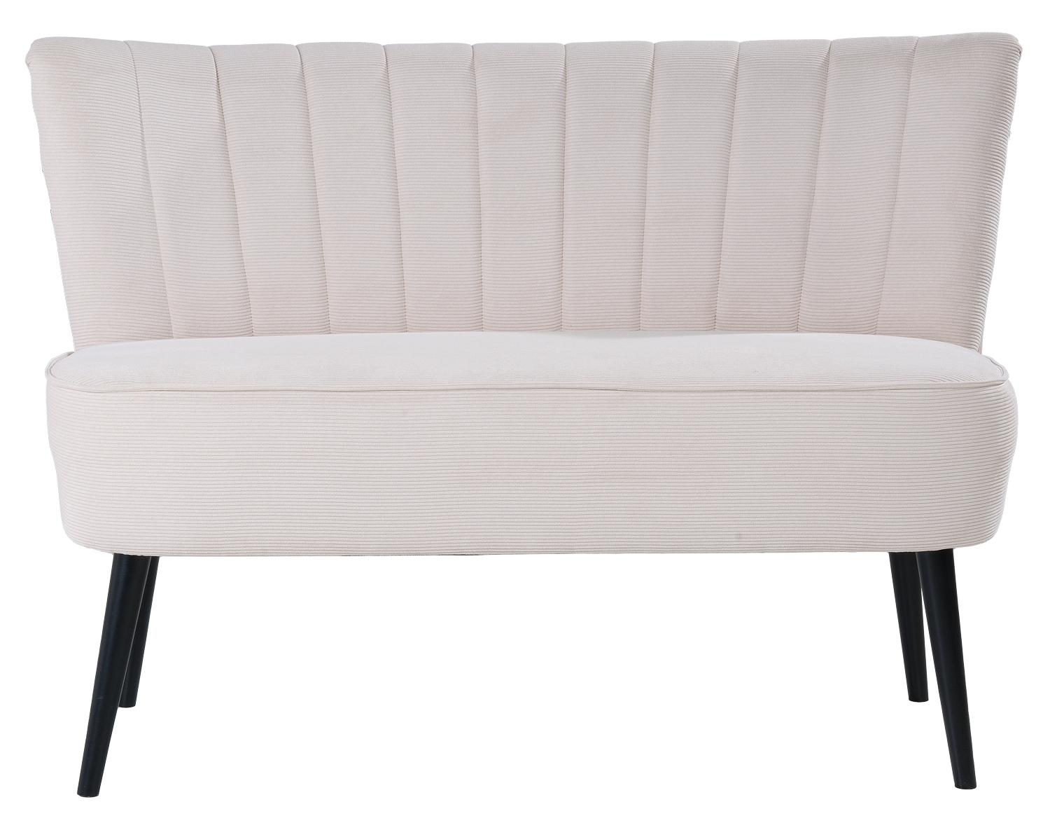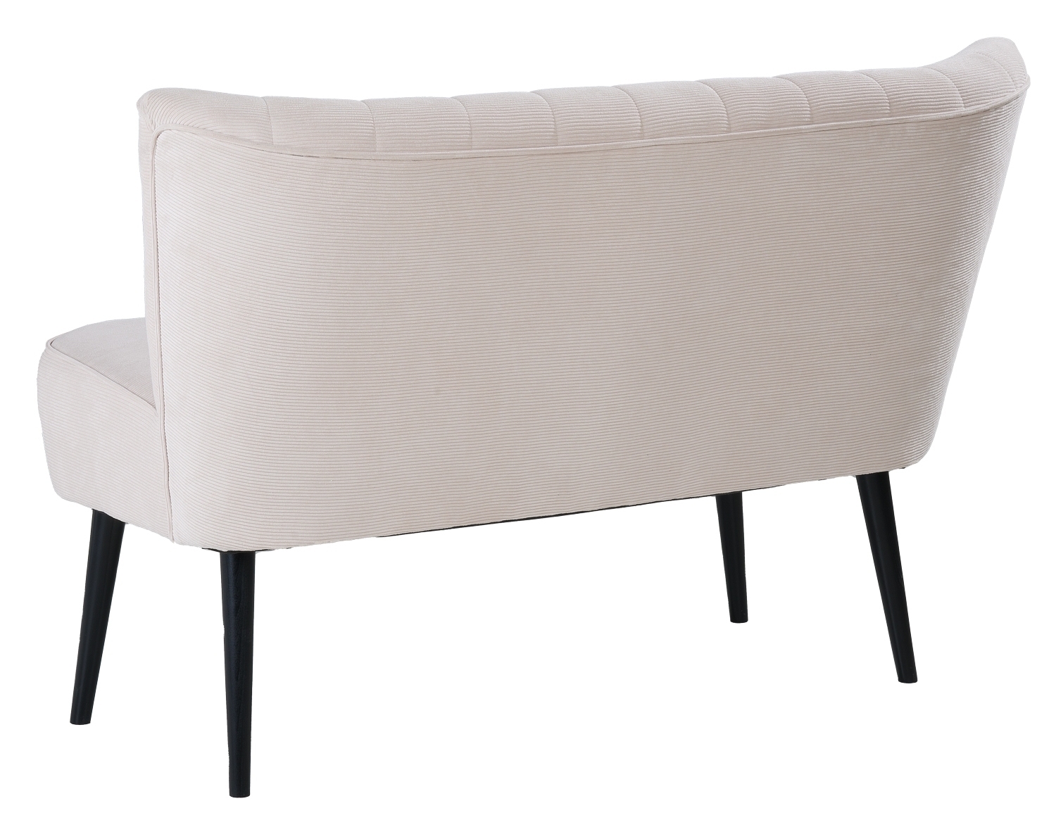 Die Sitzbank präsentiert sich in einer eleganten Farbkombination von Creme und Schwarz, mit einem ansprechenden Cordbezug. Mit einer Breite von 130 cm bietet sie ausreichend Platz für komfortables Sitzen.