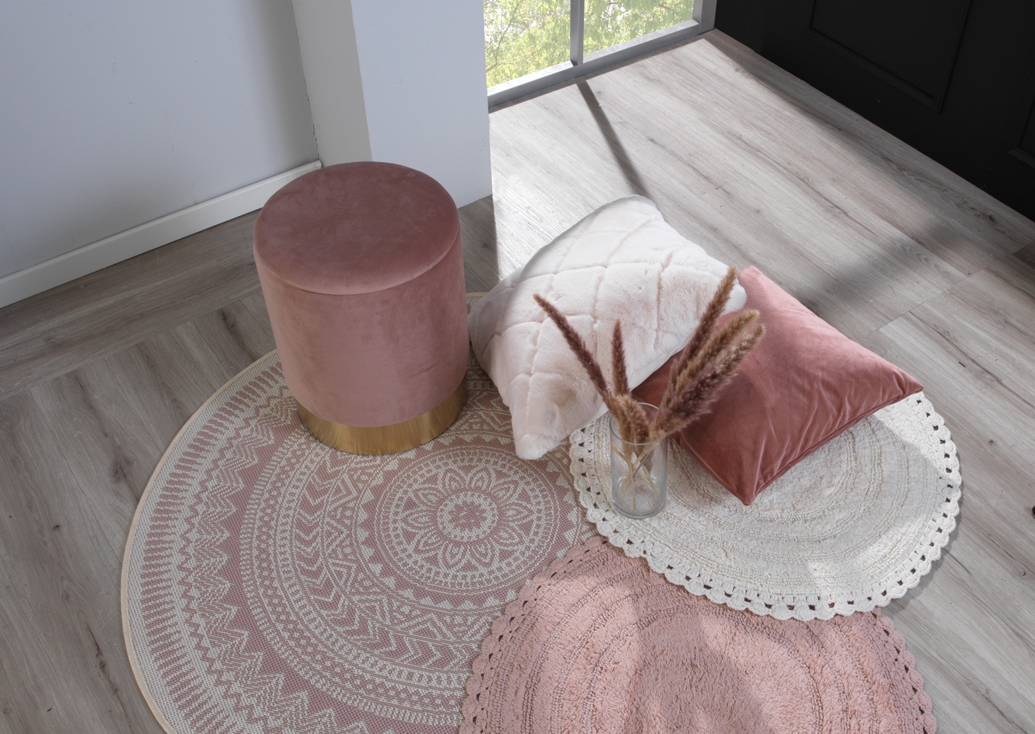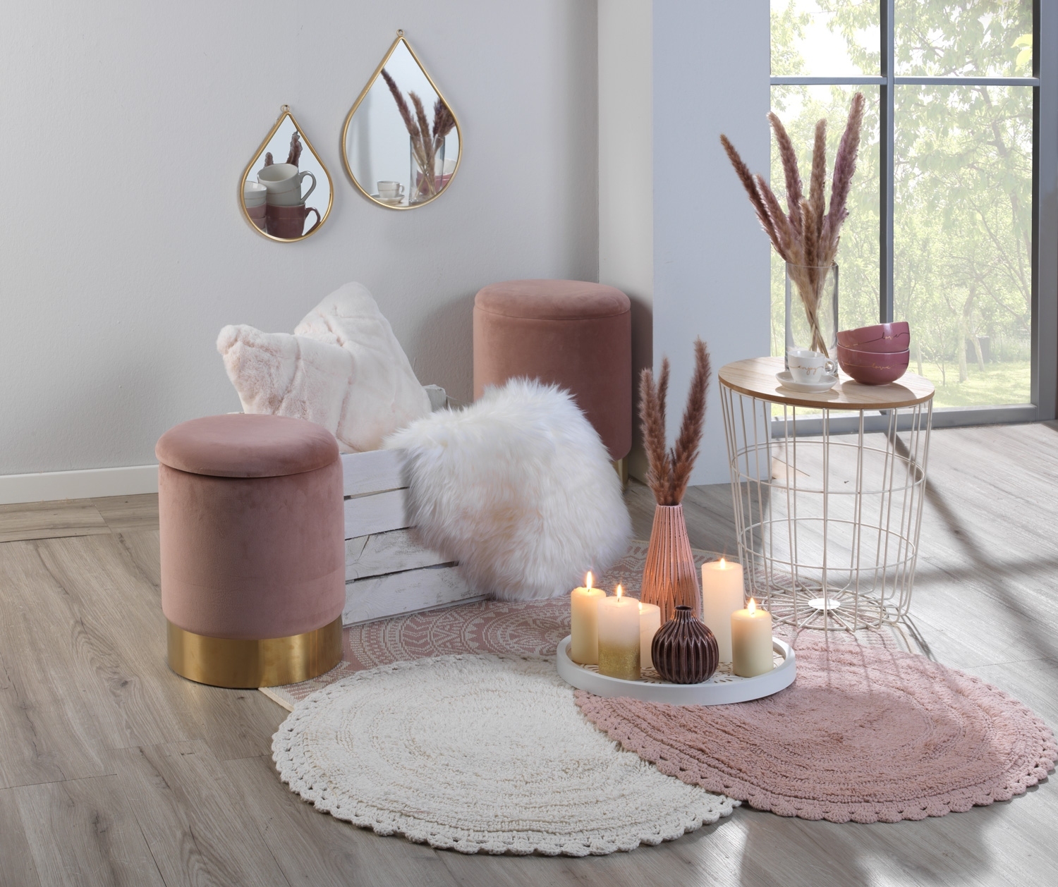 Rosa - Goldgelb - Ø 36 cm - Samtbezug - mit abnehmbarem Deckel