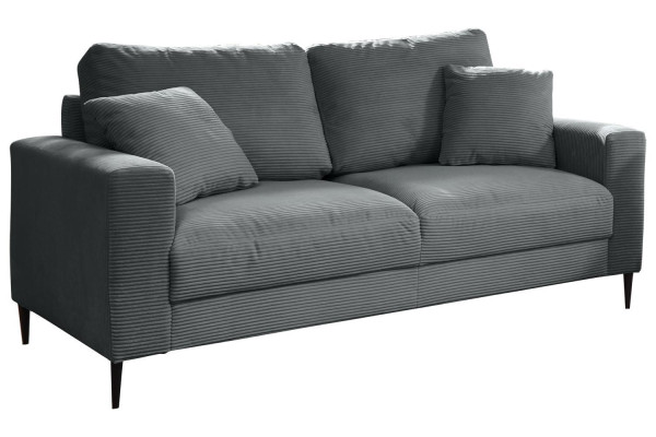 Das Sofa 2-Sitzer BIRGA ist mit einem Cordbezug in Grau ausgestattet und steht auf Metallfüßen in Schwarz. Die Sitzfläche verfügt über Schaumstoff auf Nosagunterfederung und sorgt damit für gemütliches Verweilen. Im Lieferumfang enthalten sind zwei Rückenkissen sowie zwei Zierkissen. Die Maße betragen 172 cm in der Breite, 84 cm in der Höhe und 94 cm in der Tiefe. Die Sitzhöhe liegt bei 45 cm, während die Sitztiefe 58 cm beträgt.