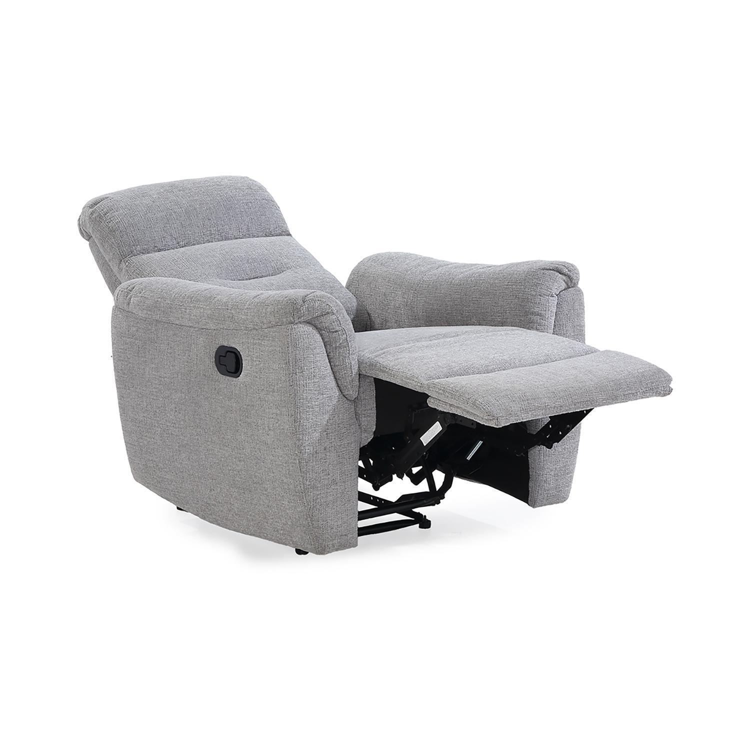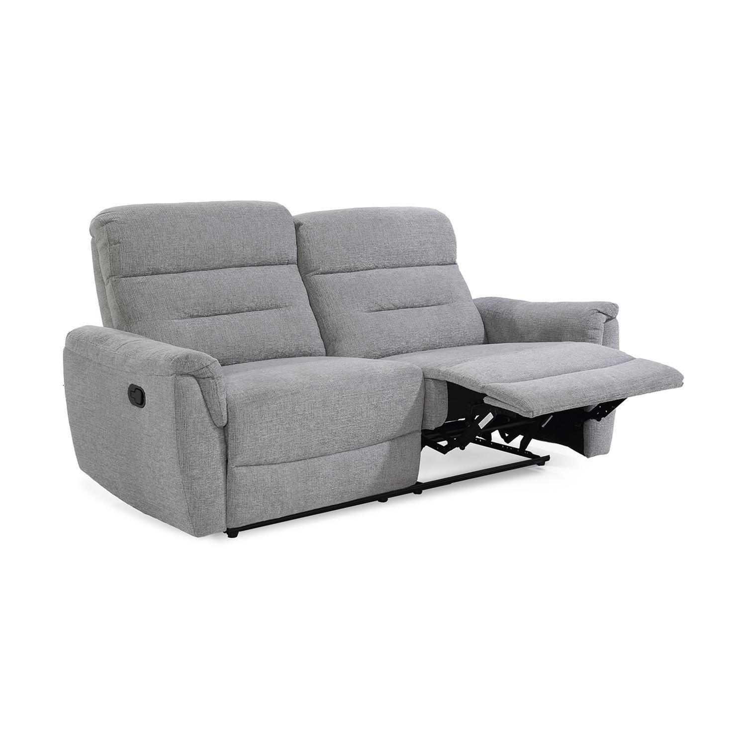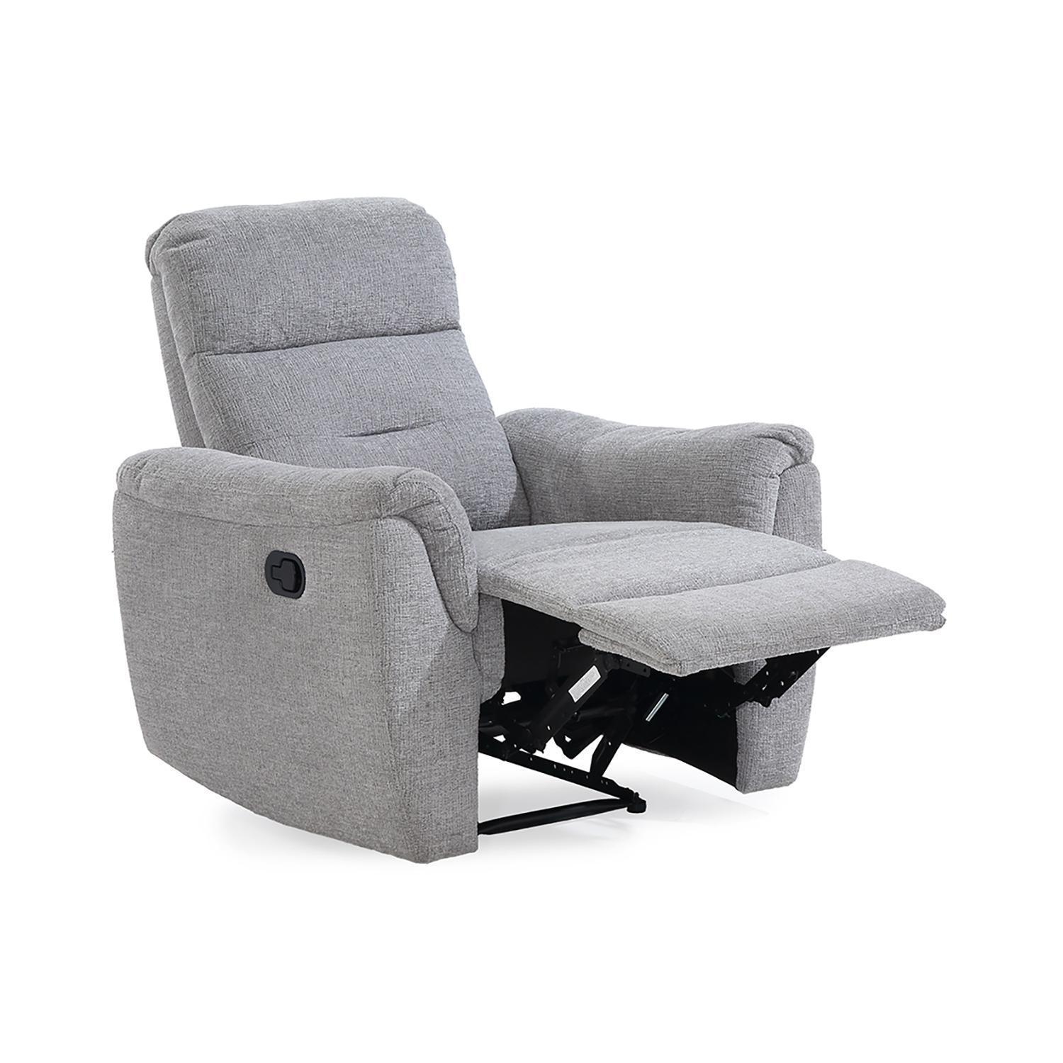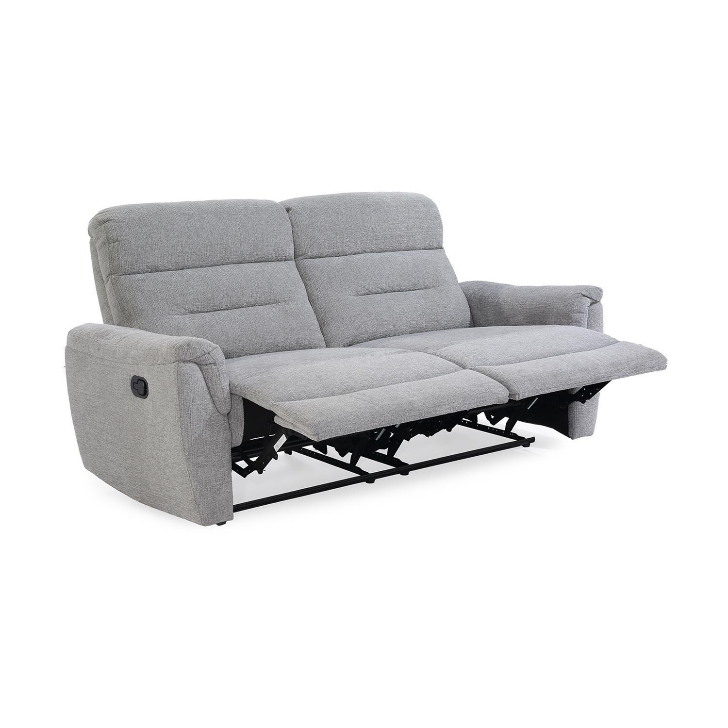Die dreiteilige Sofagarnitur UWE zeichnet sich durch ihren Chenillebezug in Hellgrau aus. Sie setzt sich aus einem 3-Sitzer, einem 2-Sitzer und einem Sessel zusammen. Für hohen Sitzkomfort sorgt eine Polsterung mit Tonnentaschen-Federkern und Wellenunterfederung. Die Garnitur verfügt über eine halbautomatische Relaxfunktion, die eine synchrone Verstellung des Fußteils ermöglicht. Die einzelnen Sitze lassen sich dabei durch Betätigung eines Seitenhebels in Kombination mit Körperdruck individuell verstellen.