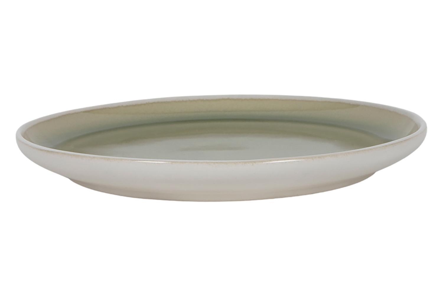 Der Speiseteller aus Steingut überzeugt mit seiner eleganten Farbkombination: Die Oberseite zeigt sich in Olivgrün, die Unterseite in Weiß. Mit einem Durchmesser von 27 cm bietet er ausreichend Platz für vielfältige Gerichte. Das unifarbene Design sorgt für eine moderne Tischoptik. Dank seines robusten Materials ist der Teller spülmaschinengeeignet und damit besonders alltagstauglich. Ideal für stilvolle Tischdekorationen und den täglichen Gebrauch.