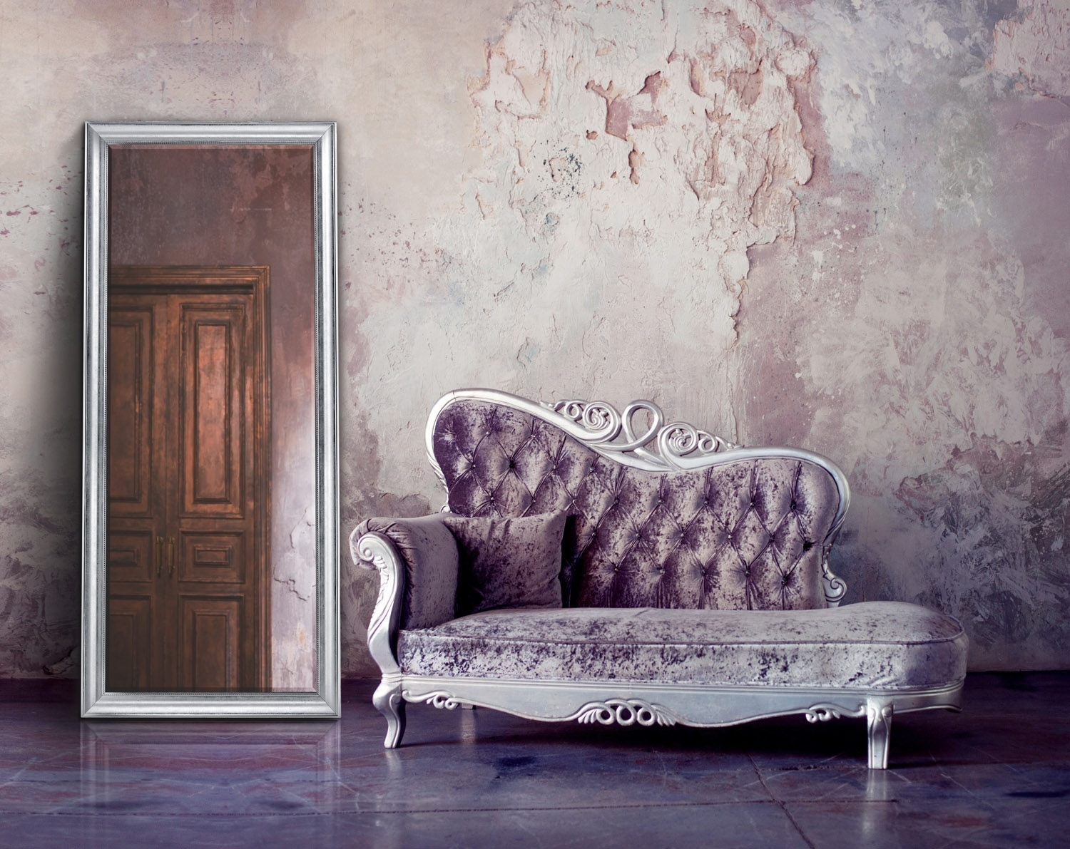 Silbergrau - Glas - Kunststoff - 80 x 180 cm - mit Facette