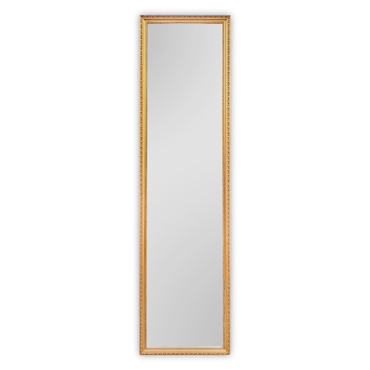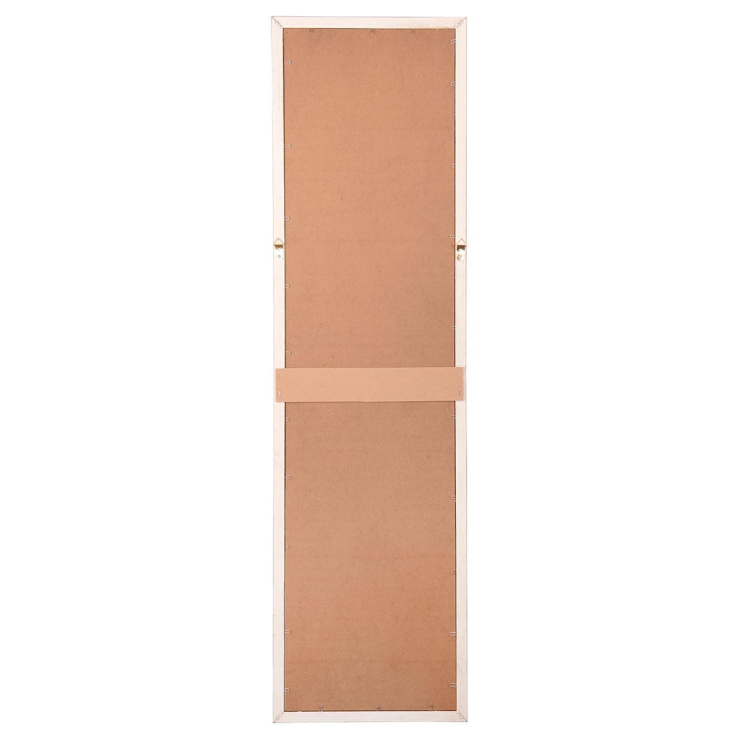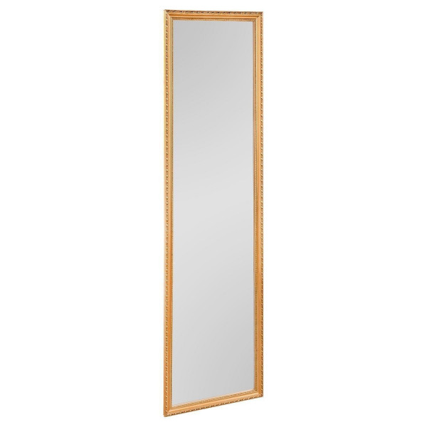 Der Spiegel LUKE ist mit einem Holzrahmen in Goldgelb versehen und verfügt über eine Spiegelfläche aus Glas. Auf der Rückseite befinden sich Aufhängungen, die eine vertikale Montage ermöglichen. Der Spiegel hat eine Höhe von 125 cm, eine Breite von 35 cm und eine Tiefe von 2 cm.