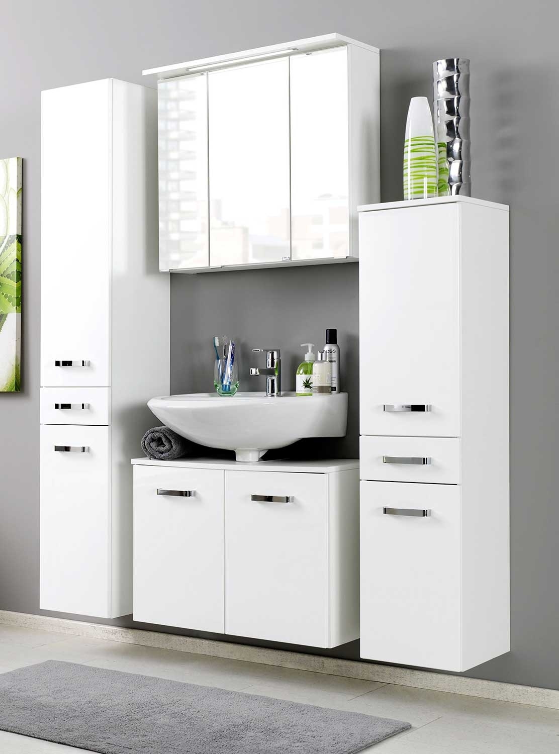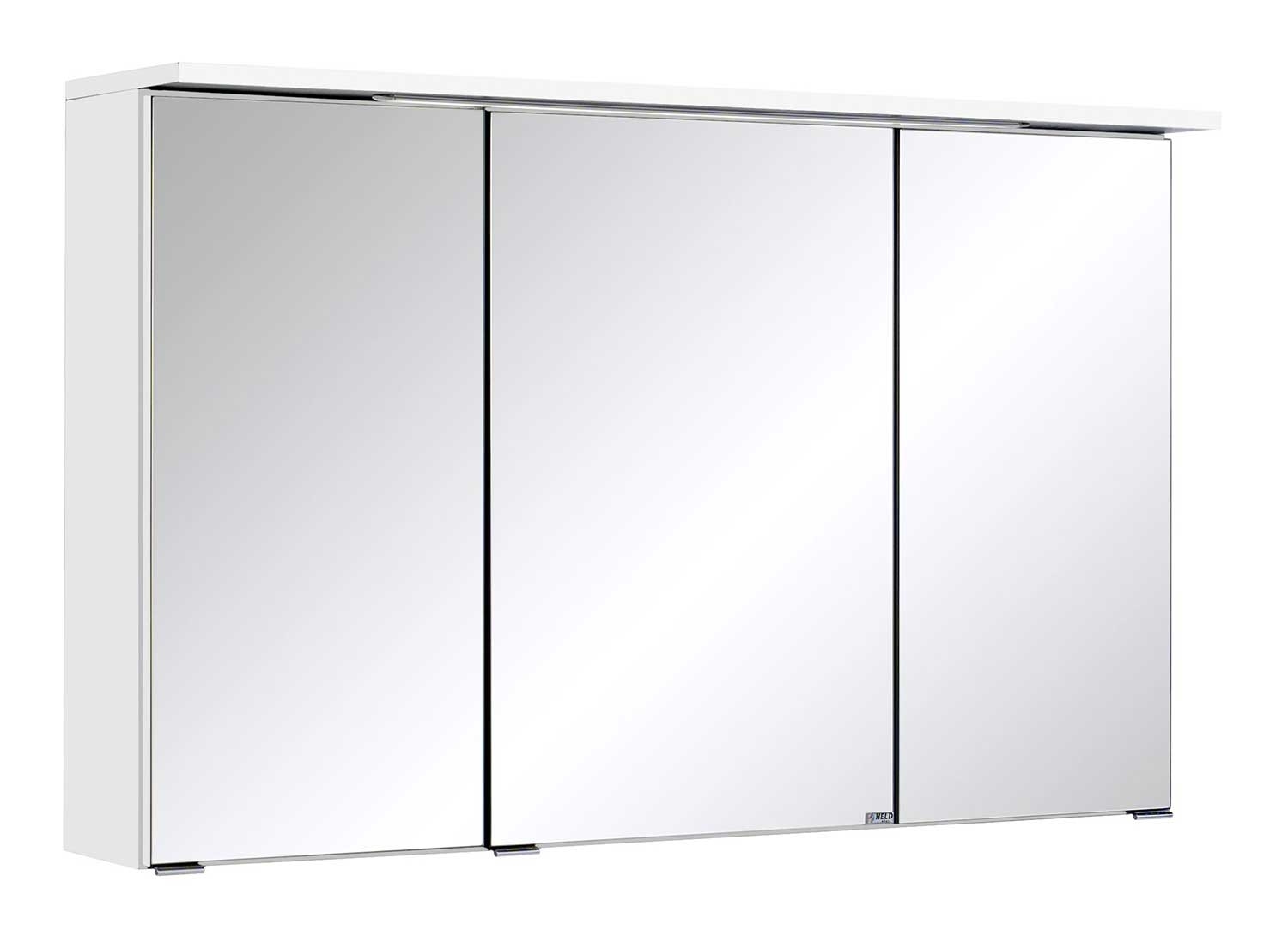 | Lieferumfang: | 1 Spiegelschrank mit 3 Türen und 6 Glaseinlegeböden und Schalter-Steckdosen-Element. Inkl. LED-Kranzbodenbeleuchtung |