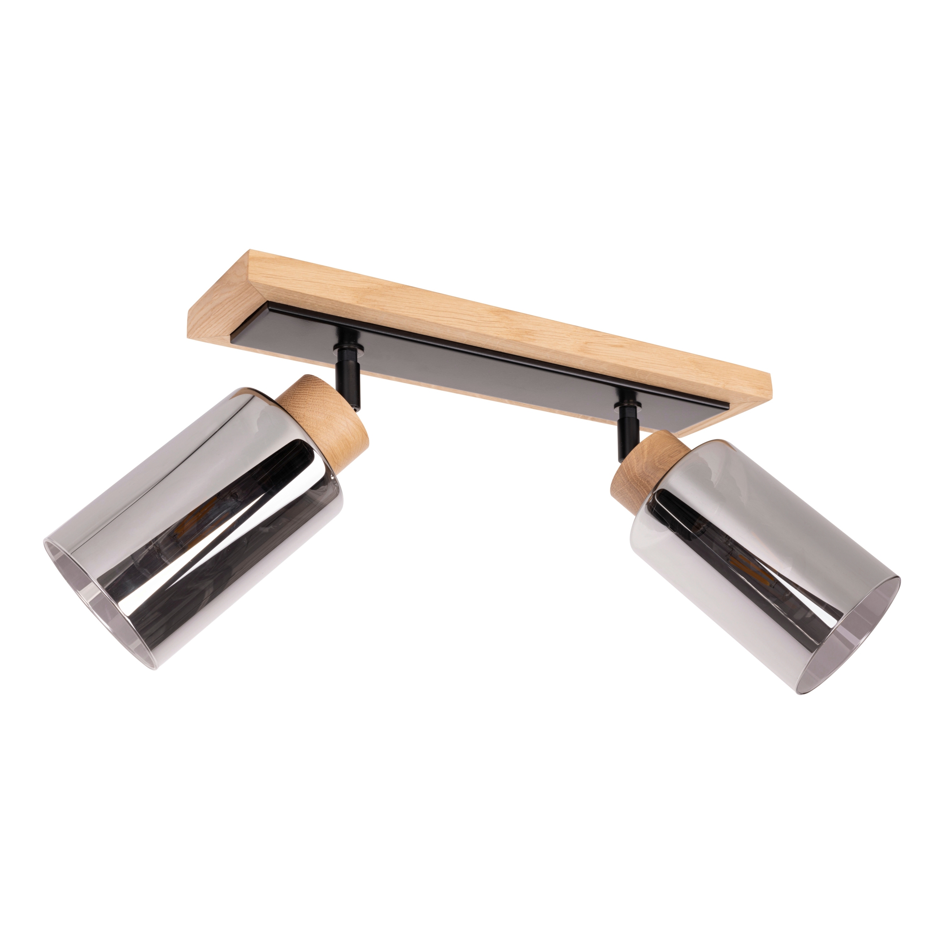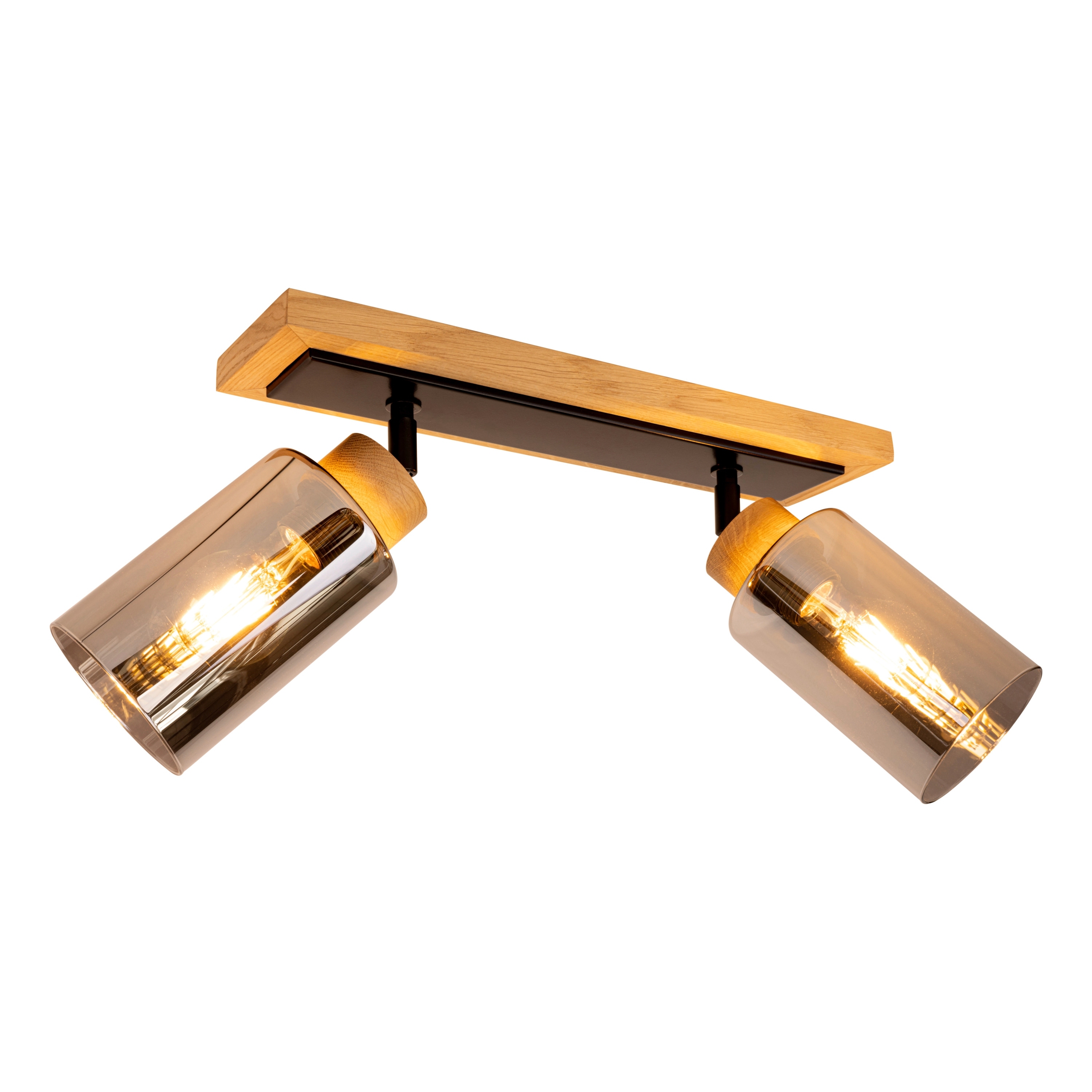 Braun - Schwarz - B 39 cm - Holz - Metall - Rauchglas - 2-flammig