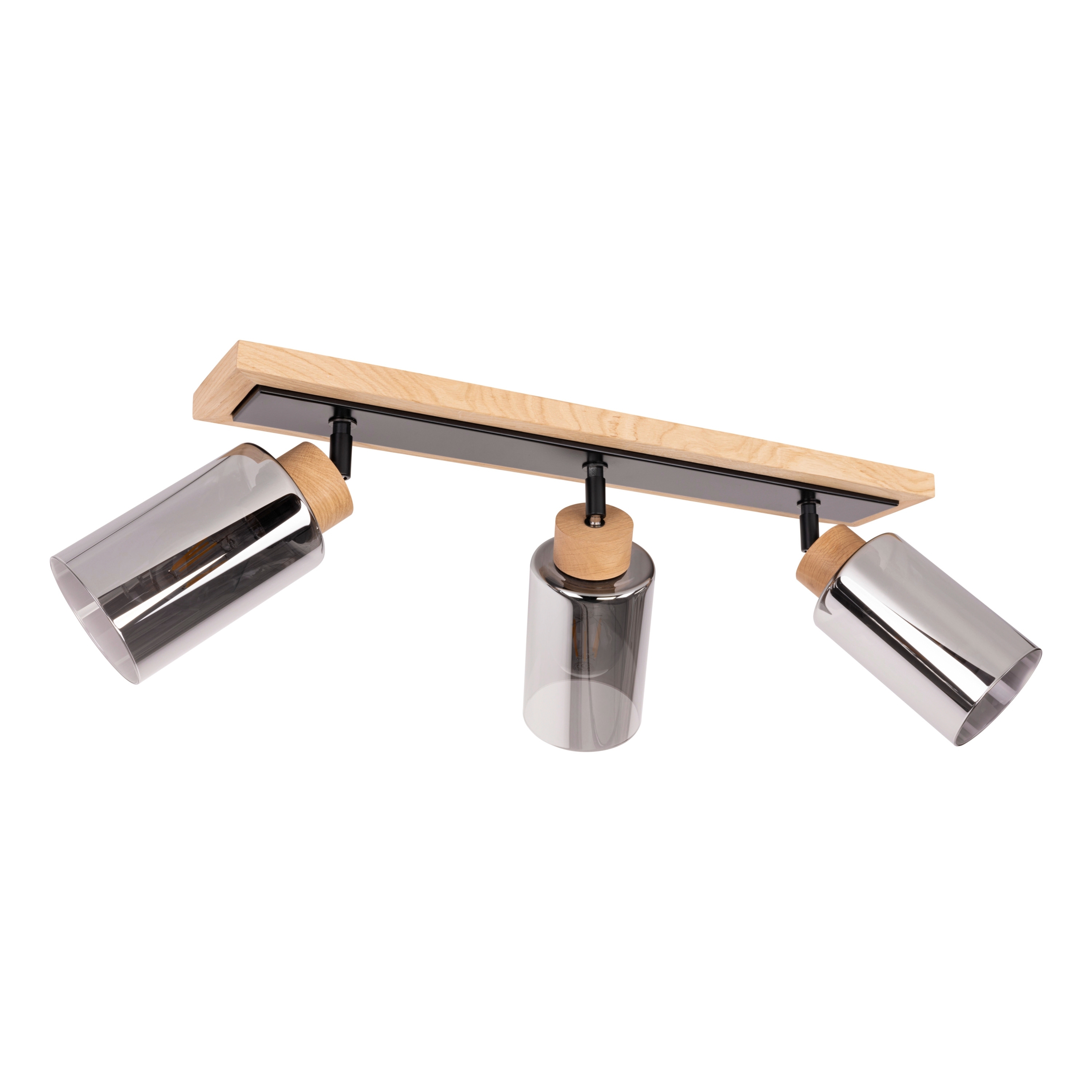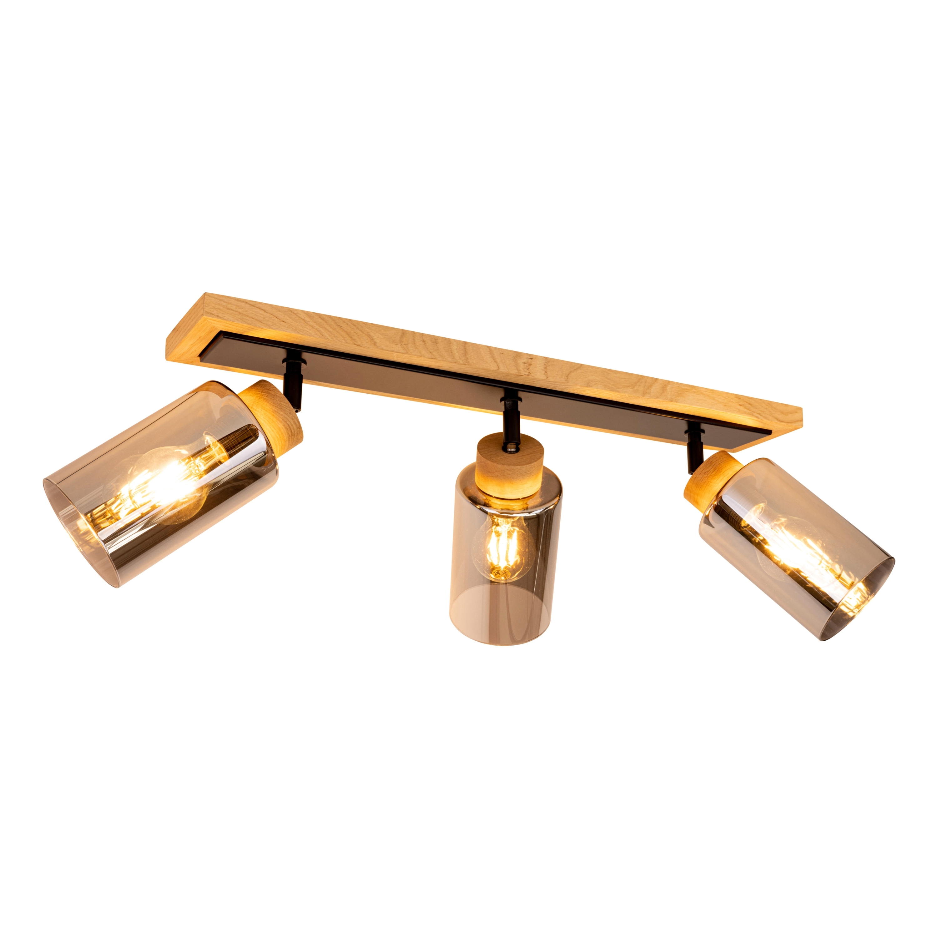 Braun - Schwarz - B 59 cm - Holz - Metall - Rauchglas - 3-flammig